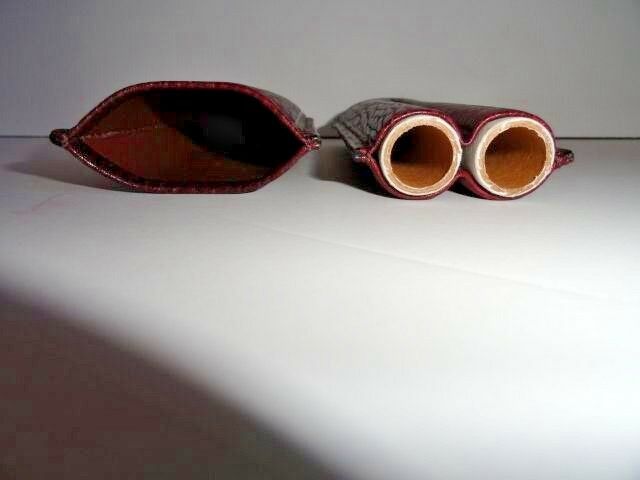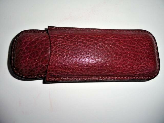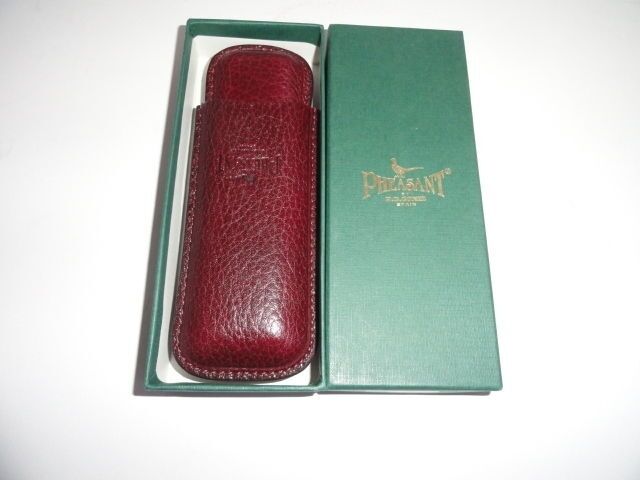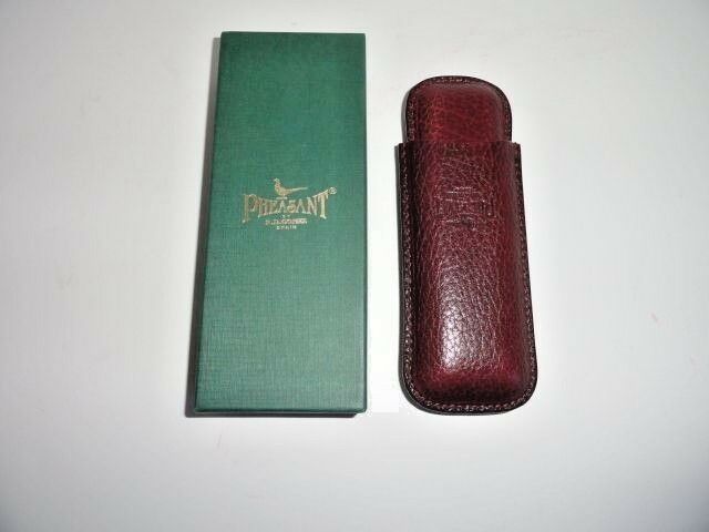 This is a new Pheasant by R.D. Gomez made in Spain . Burgundy leather carrying case in the original box. Made for 2 Robusto size to churchill size. 3/4" id and adjustable to 6"-7" . We ship Worldwide fully insured.