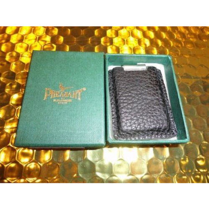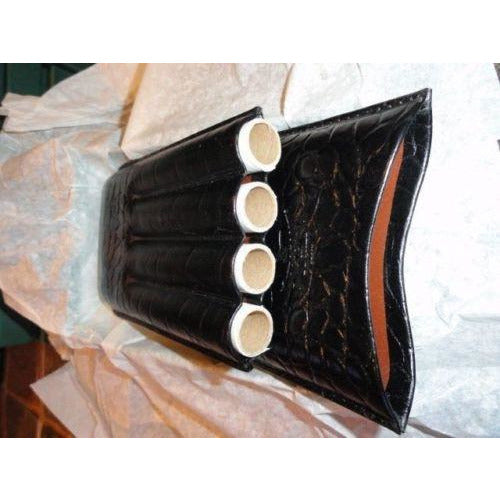 This is a new Pheasant by R.D. Gomez made in Spain . Black Croc pattern cigar carrying case only. Made for 4 Robusto size cigar or up to churchill size. 3/4" id and adjustable to 6"-7" . Also comes with a new Pheasant Stainless Steel cigar cutter in a Black Karabu Leather Case in the original box. We ship Worldwide fully insured.