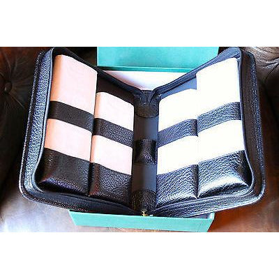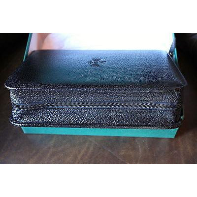 This is a new Pheasant Black Leather by R.D. Gomez made in Spain zippered carrying case. Comes in the original presentation box. Measure approx 10" H x 8" W x 2.5" Thick. Can be used for many different items. Can be used for many items. Straps are not adjustable and are attached in position. This would be good for many uses. We Ship Worldwide fully insured. Signature is required upon delivery. Thank you!