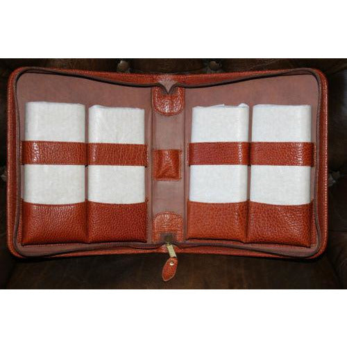 This is a new Pheasant Havana colored Leather by R.D. Gomez made in Spain zippered carrying case. Comes in the original presentation box. Measure approx 10" H x 8" W x 2.5" Thick. Can be used for many different items. Originally designed to carry cigars. But, can be used for many other items. Straps are not adjustable and are attached in position. This would be good for many uses. We Ship Worldwide fully insured.