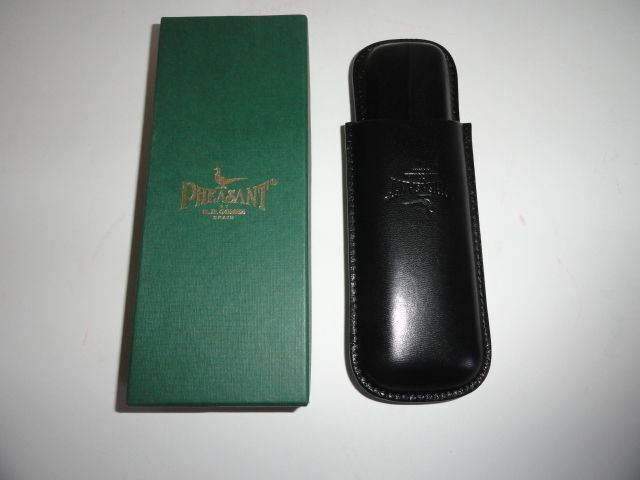 This is a new Pheasant by R.D. Gomez made in Spain . Carra Black leather cigar carrying case in the original box. Made for 2 large size cigars or churchill size. 3/4" id and adjustable to 6"-7" . We ship Worldwide fully insured. On Feb-12-11 at 08:31:07 PST, seller added the following information: