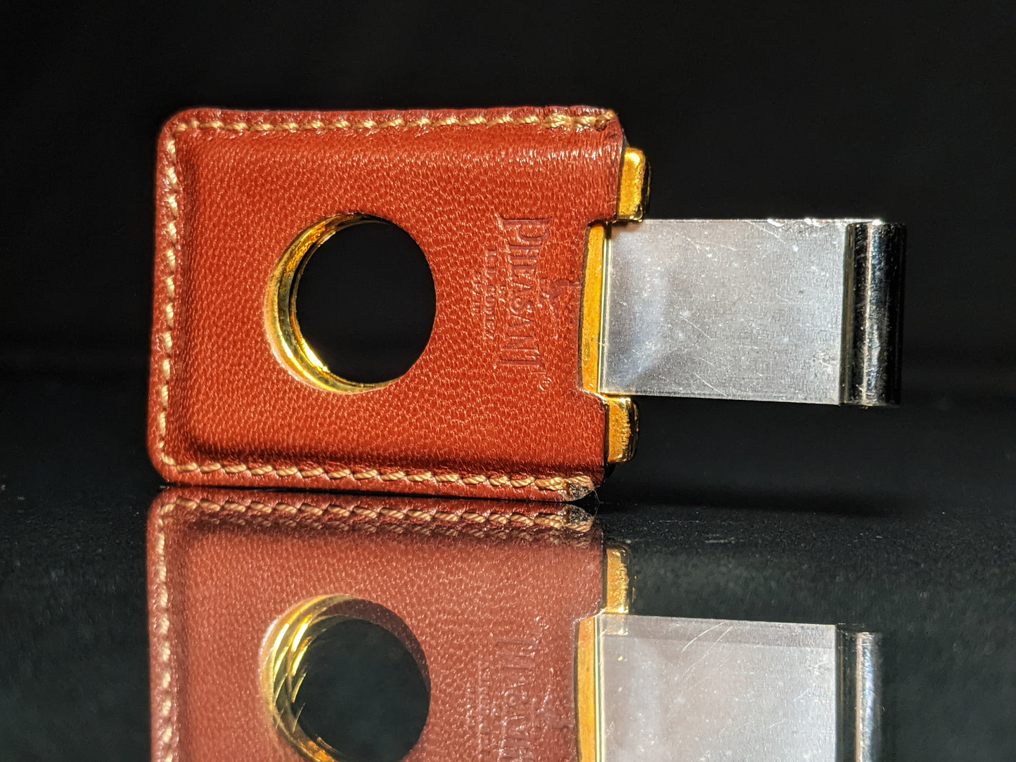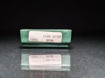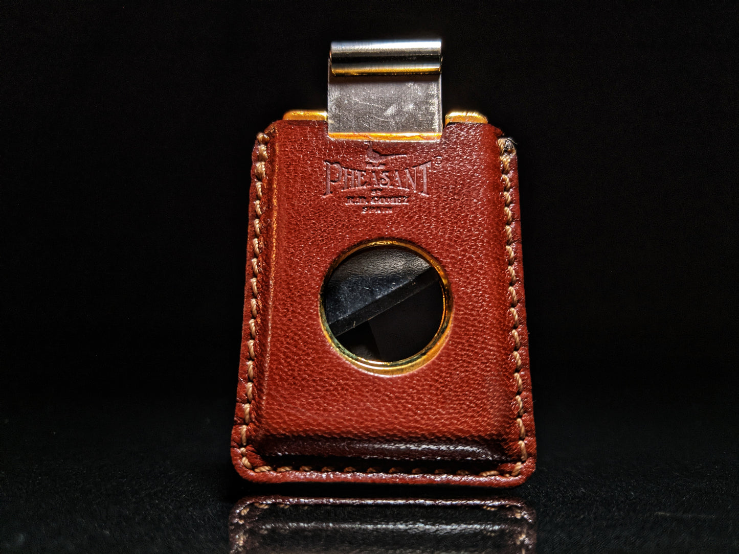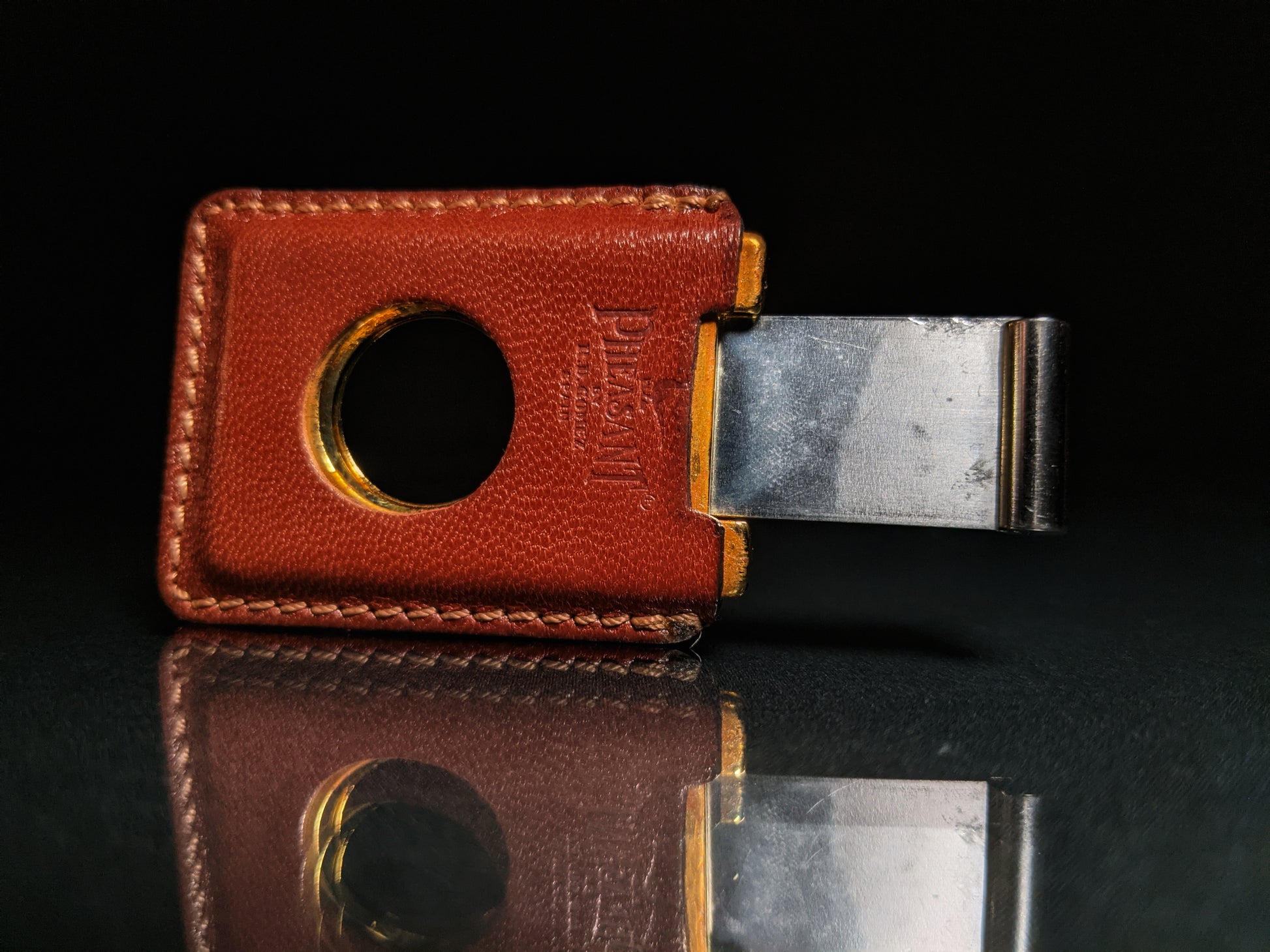 This is a new Pheasant by R.D.Gomez Stainless Steel Cigar Cutter with a Cabra Brown Leather Case. Comes sealed in tissue with original box. Made in Spain. Measures approx 2.25" L 1.25" W in the case overall outside dimensions.  Has a .750 Hole for cutting the tip off your favorite cigar. We Ship Worldwide fully insured. Signature is required upon delivery. Thank you!