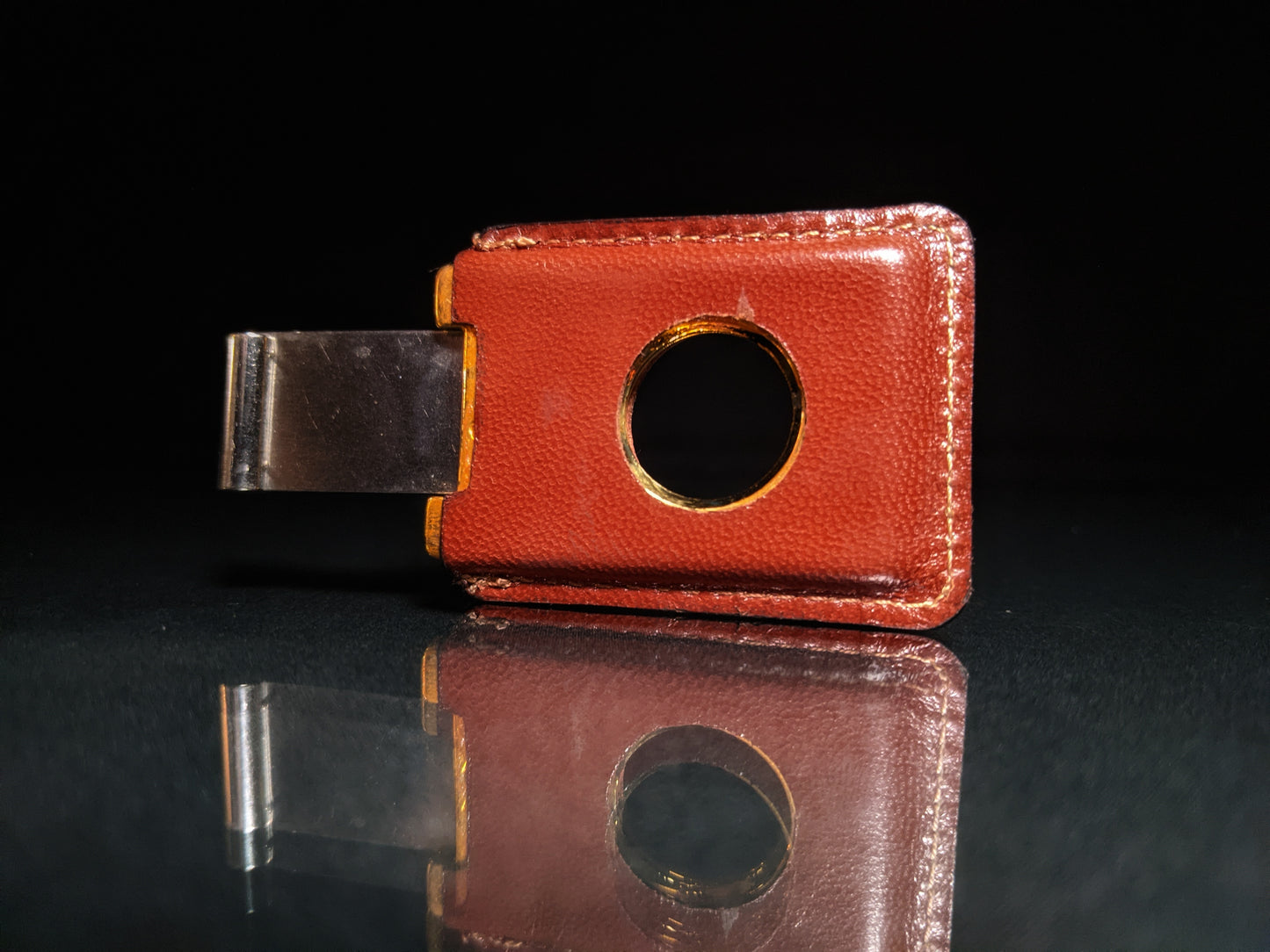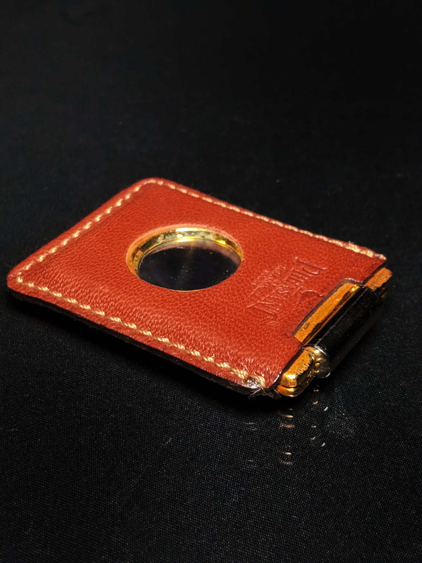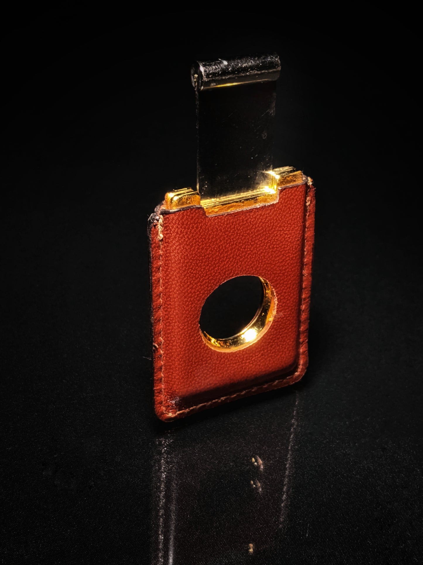 This is a new Pheasant by R.D.Gomez Stainless Steel Cigar Cutter with a Cabra Brown Leather Case. Comes sealed in tissue with original box. Made in Spain. Measures approx 2.25" L 1.25" W in the case overall outside dimensions.  Has a .750 Hole for cutting the tip off your favorite cigar. We Ship Worldwide fully insured. Signature is required upon delivery. Thank you!