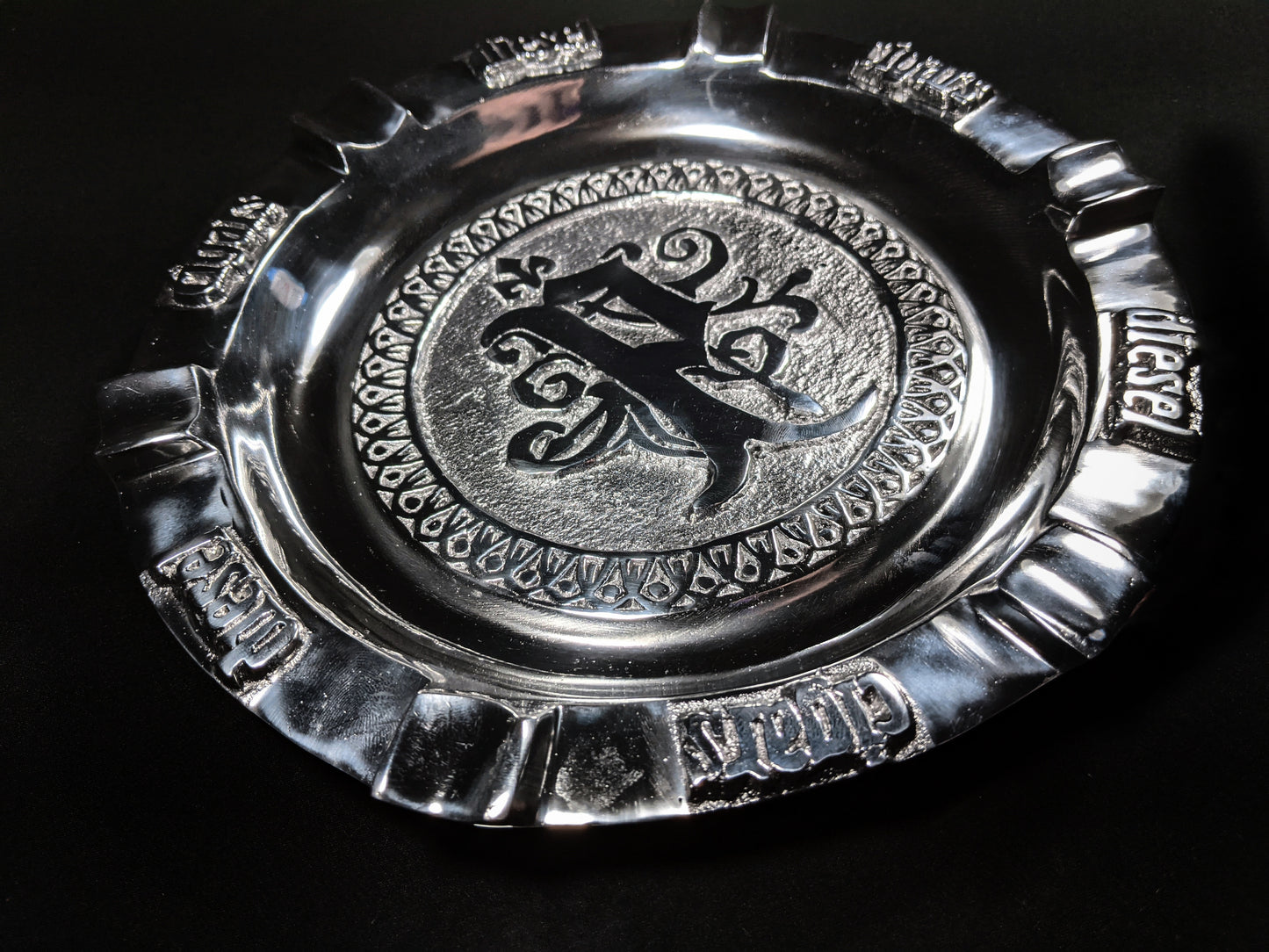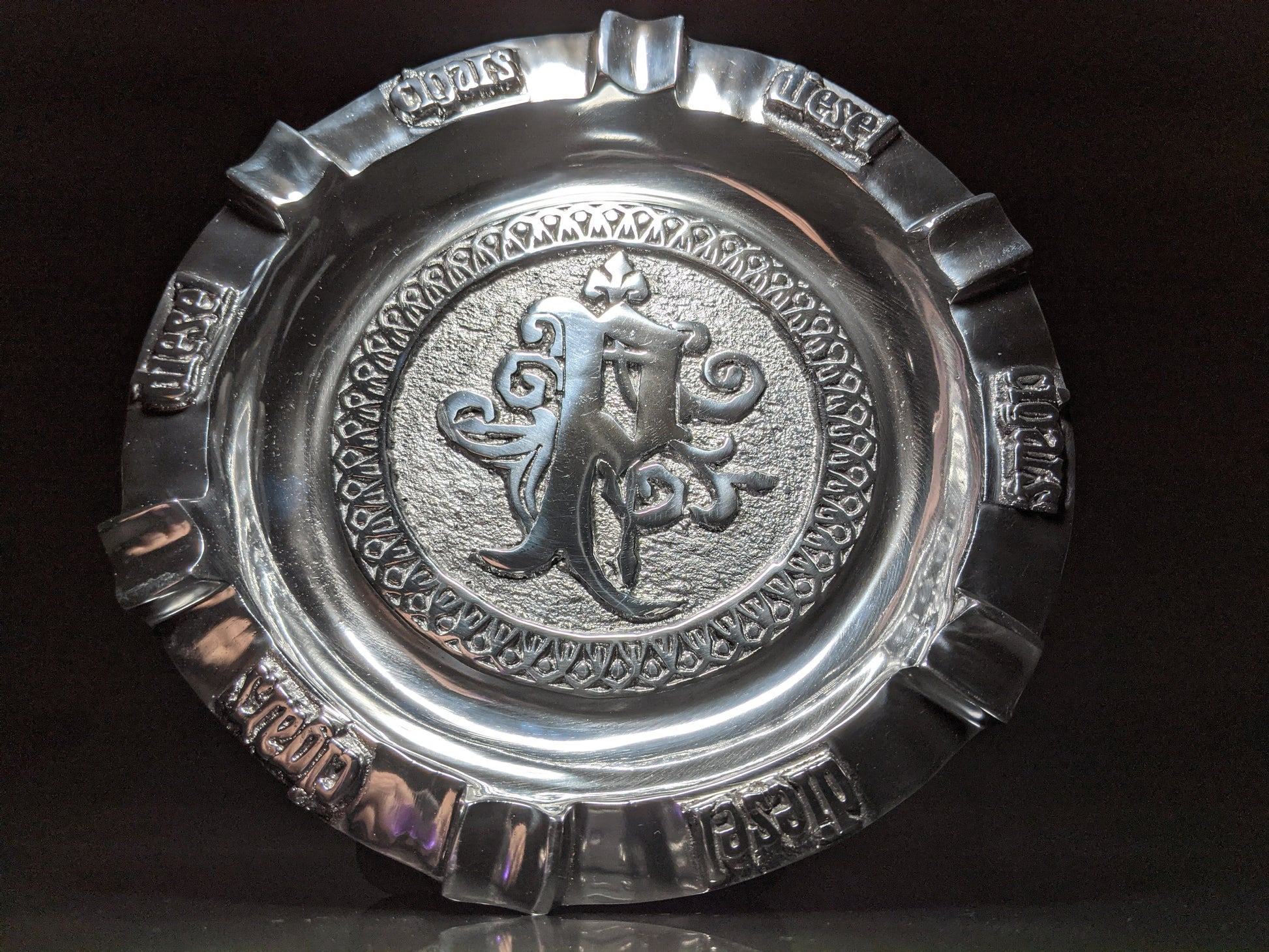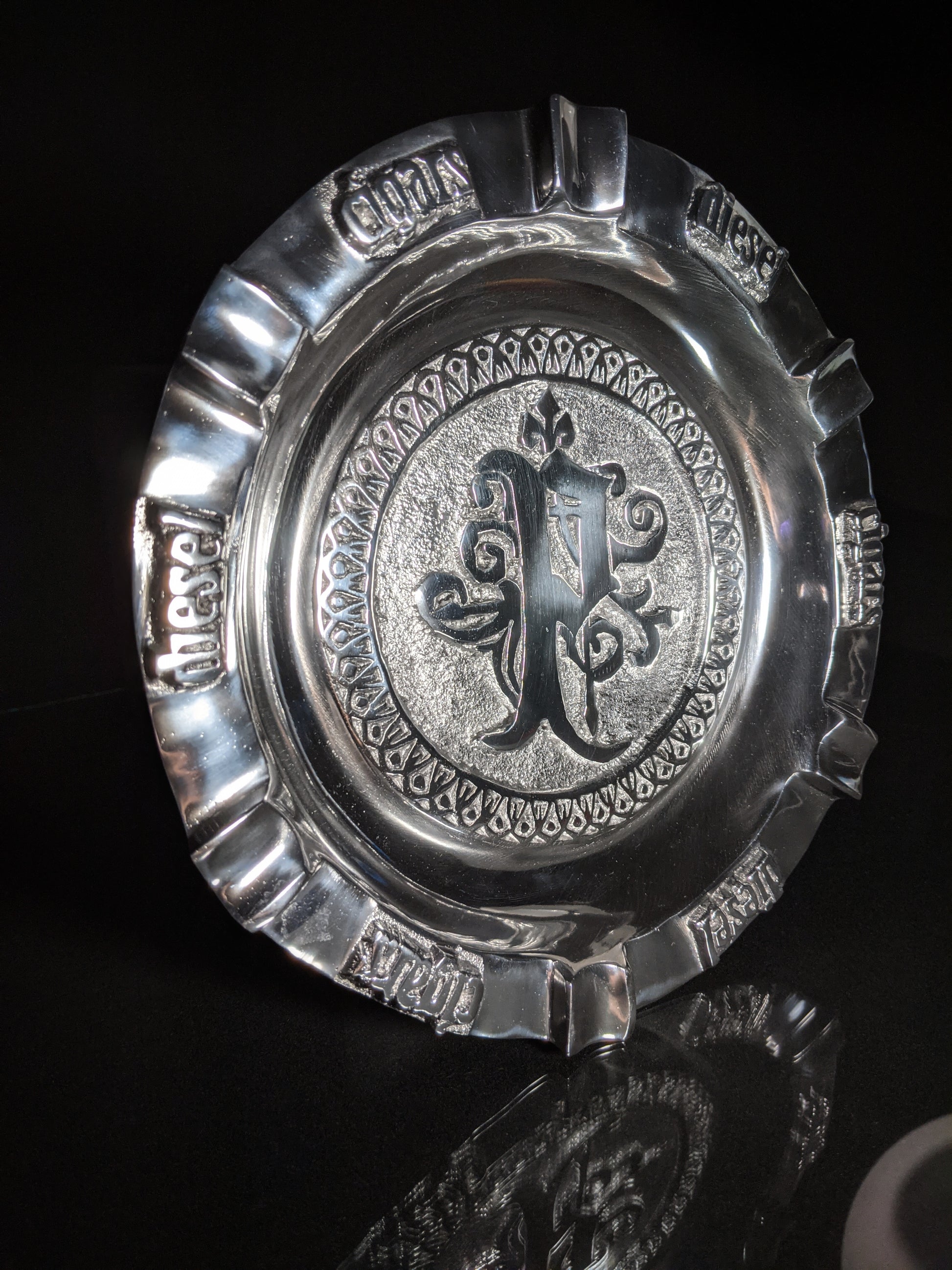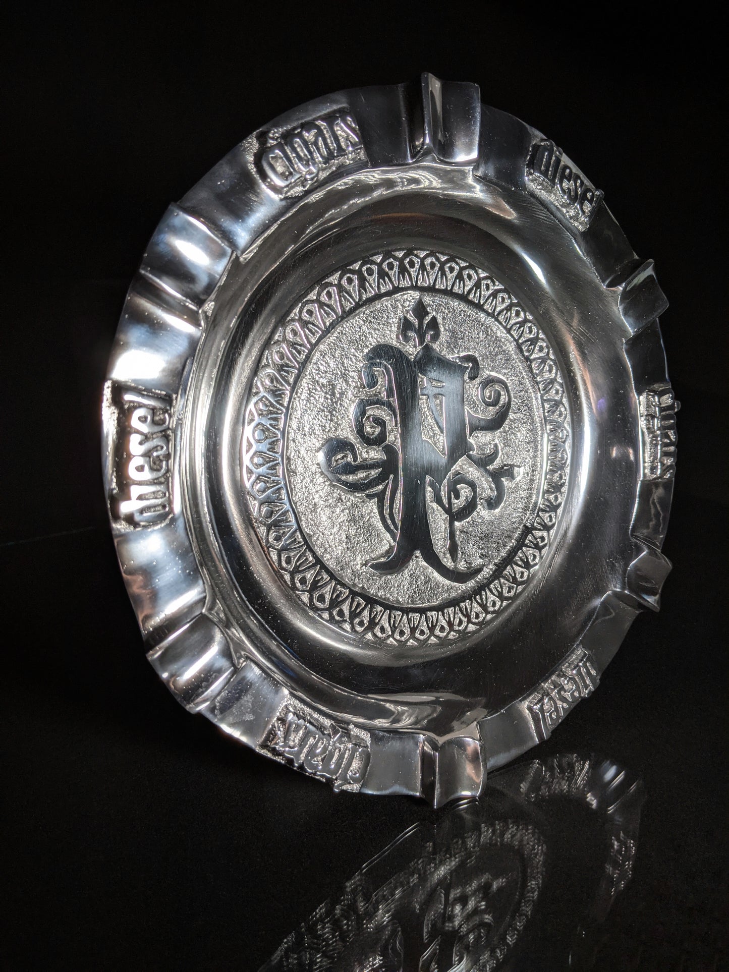 Drew Estates Polished Pewter 9 " cigar ashtray with 5 slots for your cigars