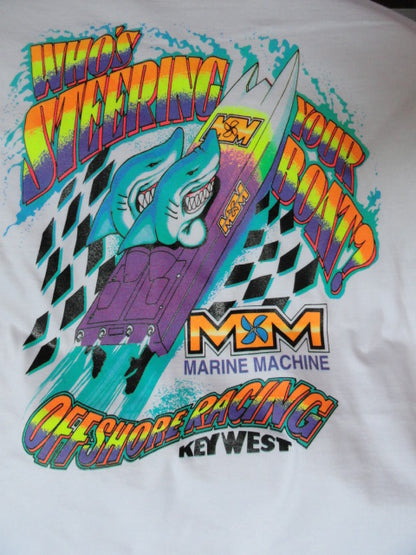 This is new Hanes Beefy T Adult T-Shirt in 100% cotton . . Comes in multi-colored silk screened scene on the back in colors saying " Who's Steering Your Boat" We ship Worldwide fully insured.