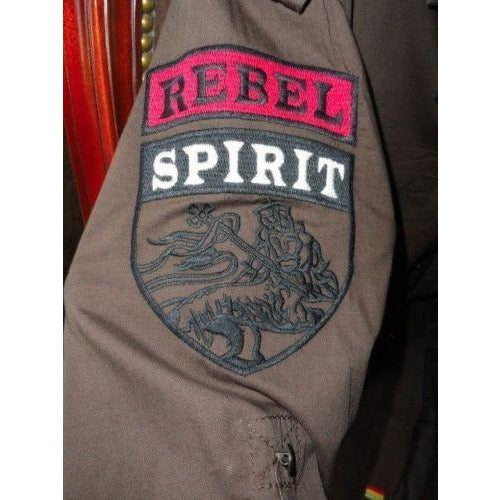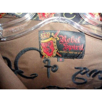 This is a pre-owned Rebel Spirit " King of Kings" Brown Long Sleeve Shirt in size Medium. Excellent condition. Freshly laundered. Comes custom embroidered and with fancy buttons. These shirts to run a little large in size. We Ship Worldwide fully insured. Signature is required upon delivery.