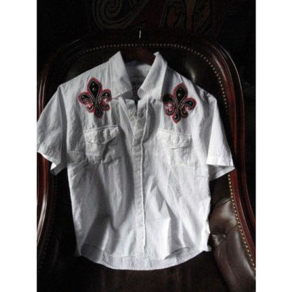 Retrofit Large Short Sleeve Shirt White with Embroidery Front & Back