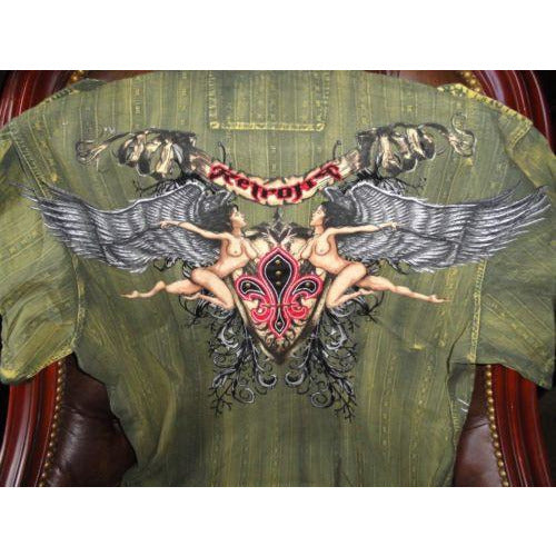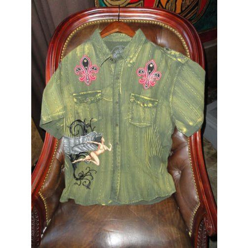 Retrofit XXX-Large Short Sleeve Shirt Kakhi with Embroidery Front & Back