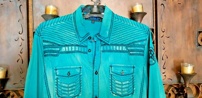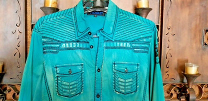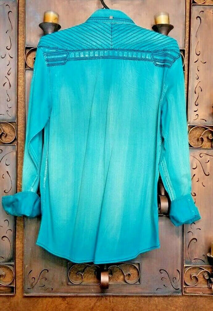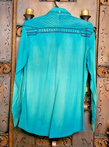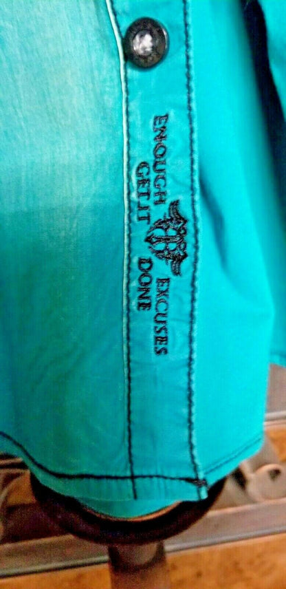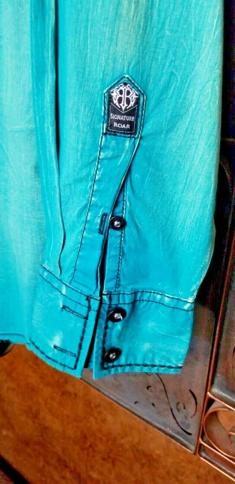 Roar Teal Signature Long Sleeve Button Up Shirt Size Medium
