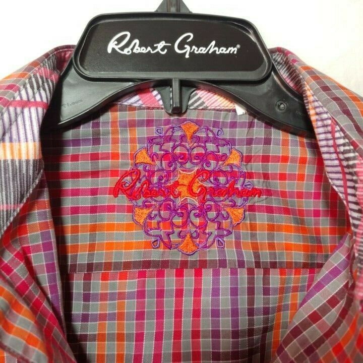 100% Original ROBERT GRAHAM long-sleeved button down classic fit shirt. Color and bold printed pattern with embroidered "RG" logo at the bottom of the hem. ---Pre-Owned ---Medium Fit ---Freshly Laundered ---Classic Fit ---100% Cotton ---Machine Wash Cold ---"Knowledge Wisdom Faith" embroidery ---No Missing Buttons, No Issues! ---100% Satisfaction Gauranteed!