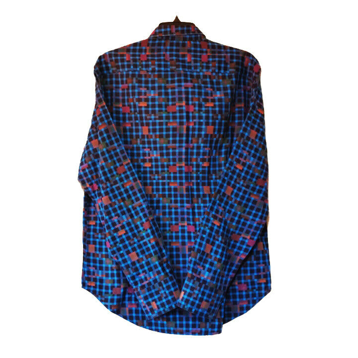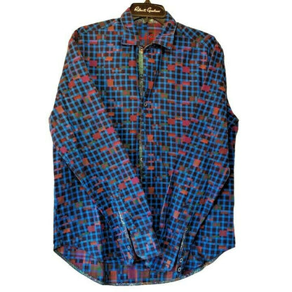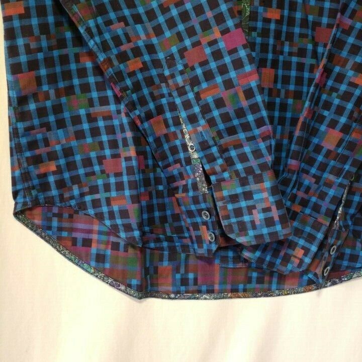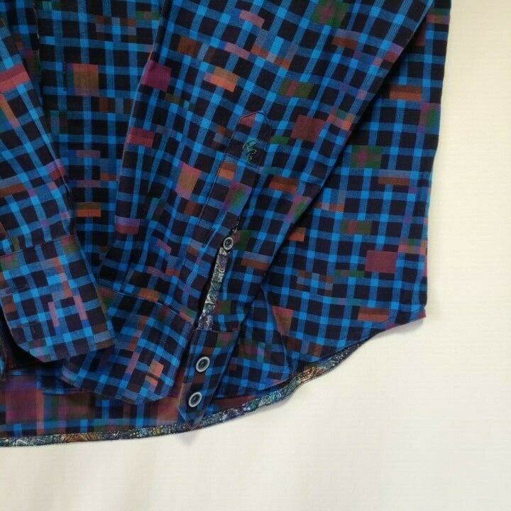 100% Original ROBERT GRAHAM long-sleeved button down classic fit shirt. Color and bold printed pattern with embroidered "RG" logo at the bottom of the hem.