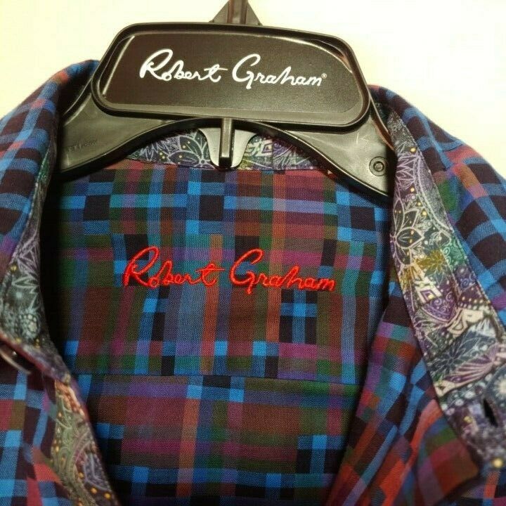 100% Original ROBERT GRAHAM long-sleeved button down classic fit shirt. Color and bold printed pattern with embroidered "RG" logo at the bottom of the hem. ---Pre-Owned ---Medium Fit ---Freshly Laundered ---Classic Fit ---100% Cotton ---Machine Wash Cold ---"Knowledge Wisdom Faith" embroidery ---No Missing Buttons, No Issues! ---100% Satisfaction Gauranteed!