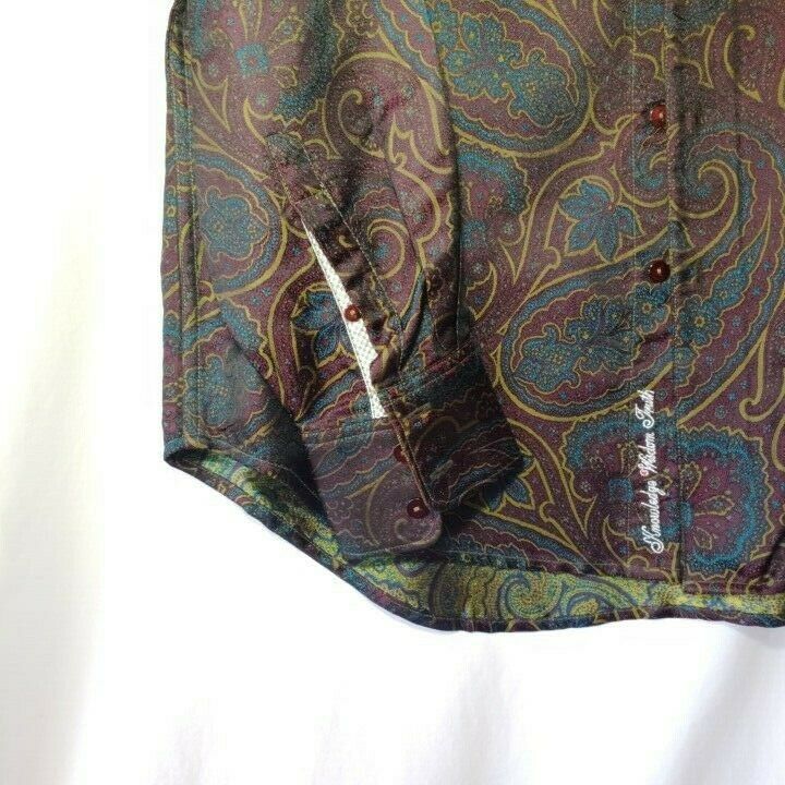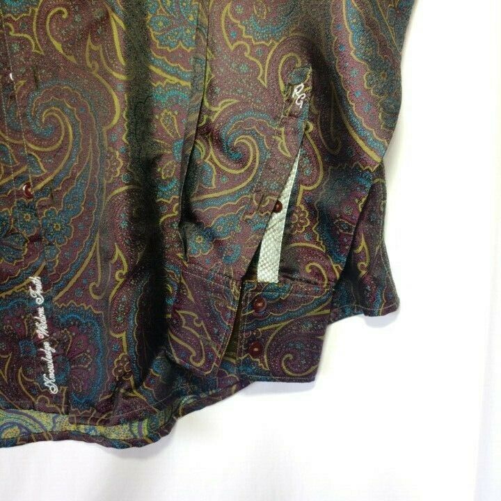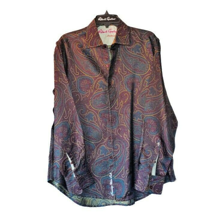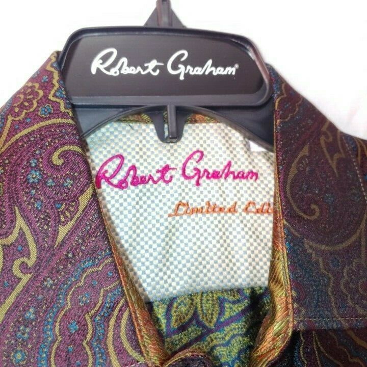 100% Original ROBERT GRAHAM long-sleeved button down classic fit shirt. Color and bold printed pattern with embroidered "RG" logo at the bottom of the hem. ---Pre-Owned ---Medium Fit ---Freshly Laundered ---Classic Fit ---100% Cotton ---Machine Wash Cold ---"Knowledge Wisdom Faith" embroidery ---No Missing Buttons, No Issues! ---100% Satisfaction Gauranteed!