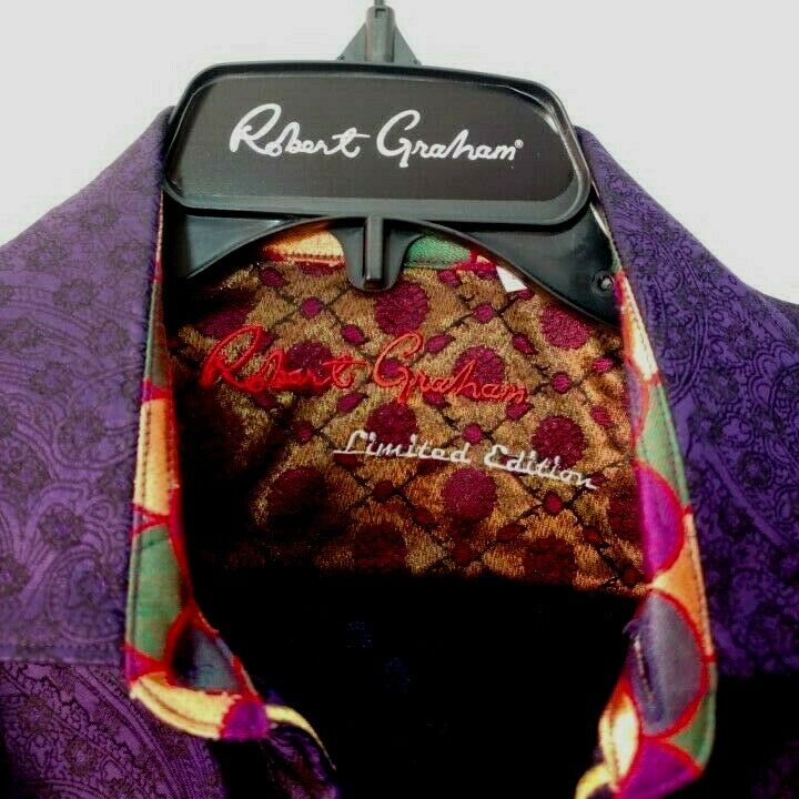 100% Original ROBERT GRAHAM long-sleeved button down classic fit shirt. Color and bold printed pattern with embroidered "RG" logo at the bottom of the hem. ---Pre-Owned ---Medium Fit ---Freshly Laundered ---Classic Fit ---100% Cotton ---Machine Wash Cold ---"Knowledge Wisdom Faith" embroidery ---No Missing Buttons, No Issues! ---100% Satisfaction Gauranteed!