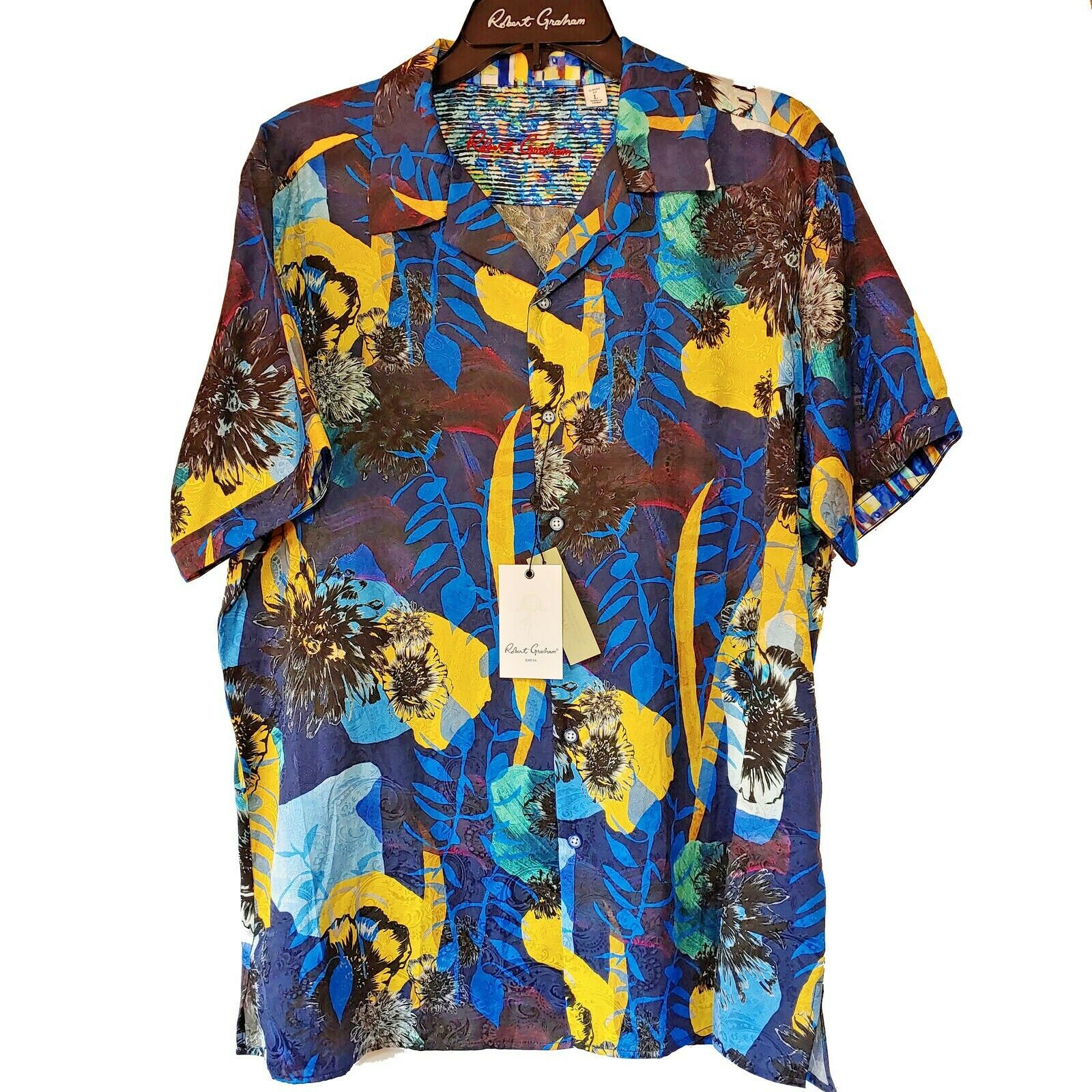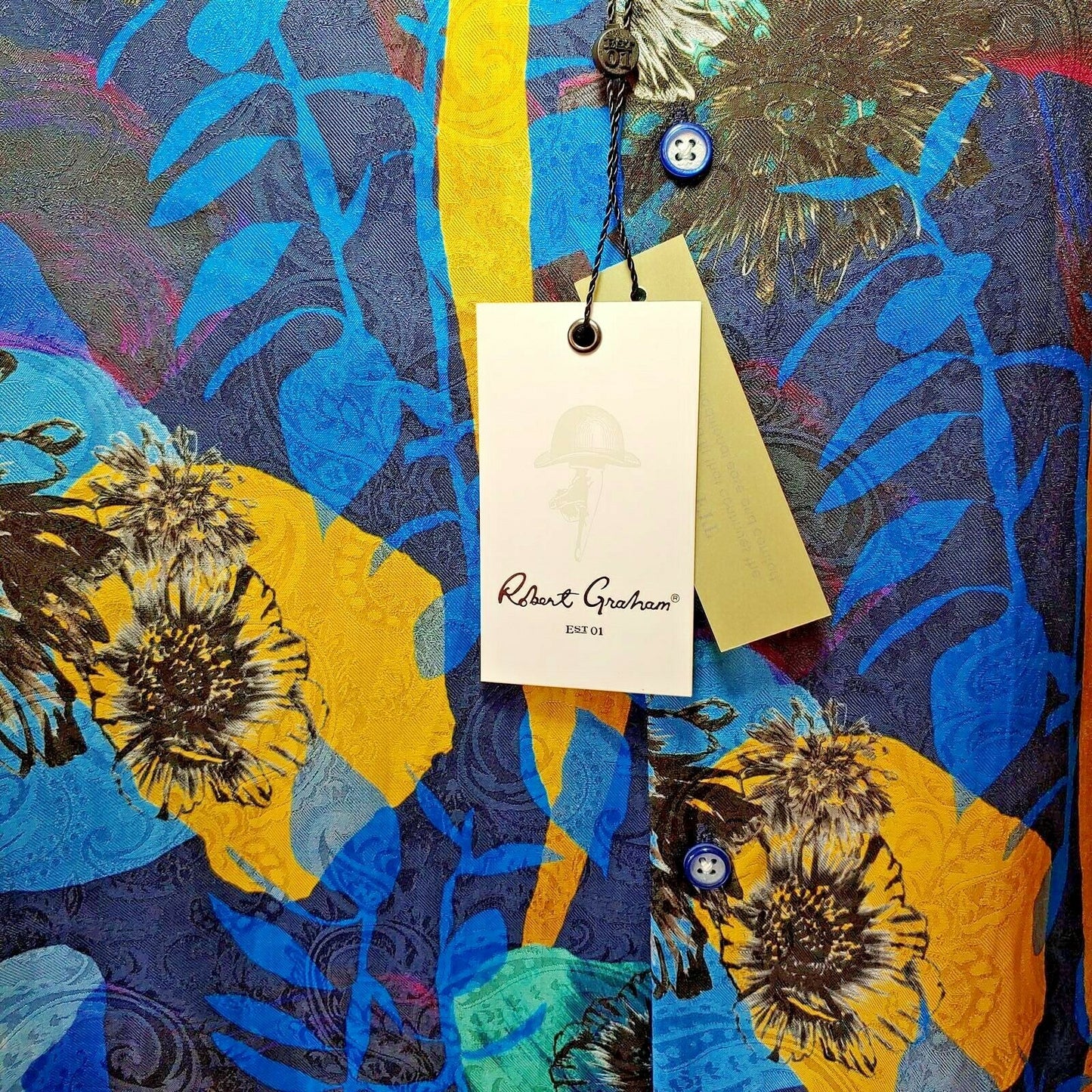 100% Original ROBERT GRAHAM long-sleeved button-down classic fit shirt. Color and bold printed pattern with embroidered "RG" logo at the bottom of the hem.