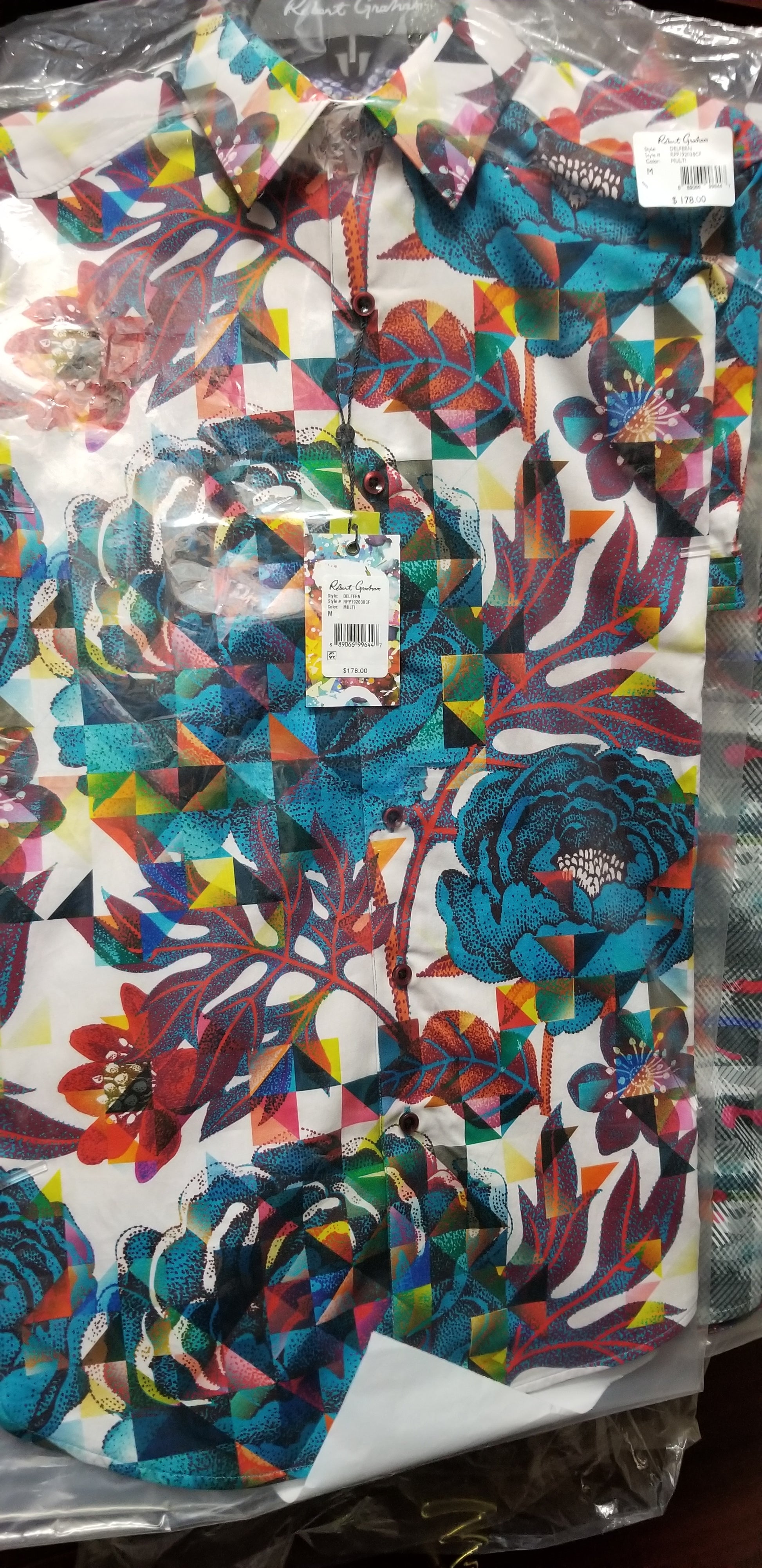 This is a preowned Robert Graham Delfern Medium size shirt. No issues. Freshly laundered. We ship worldwide fully insured. Signature is required upon delivery.