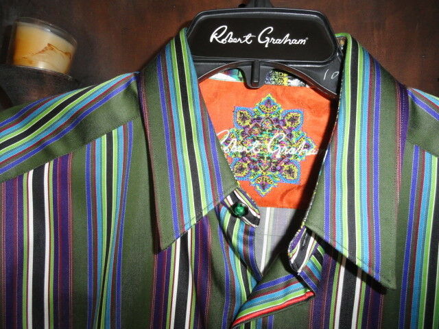 This is a Preowned Robert Graham Medium-sized Shirt. Good condition. Runs a little large in size. 23" armpit to armpit and 20" across shoulders. Comes freshly dry cleaned. We ship Worldwide fully insured.