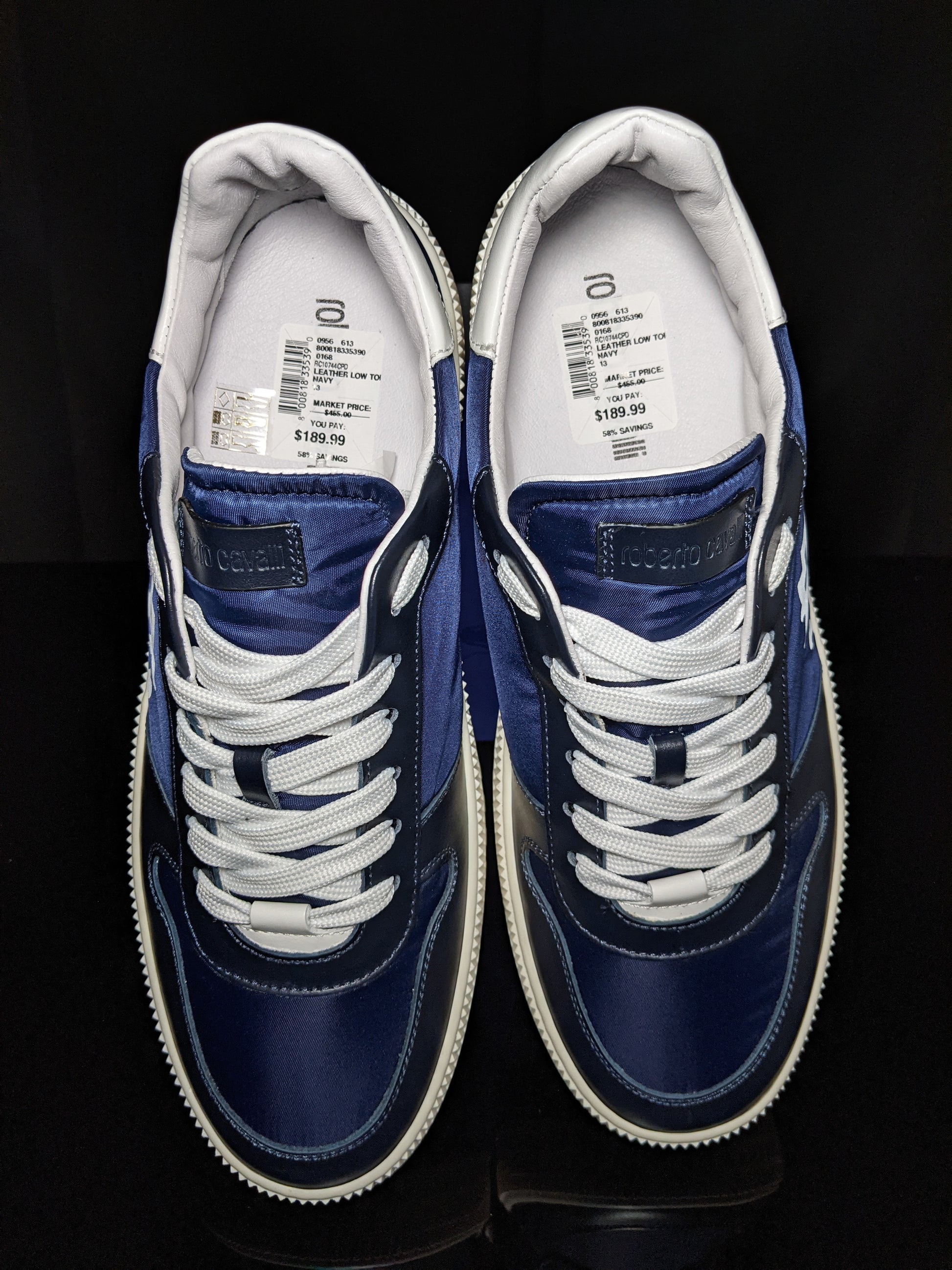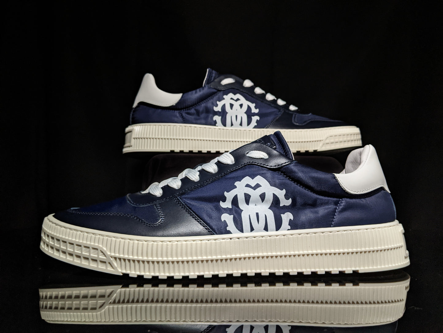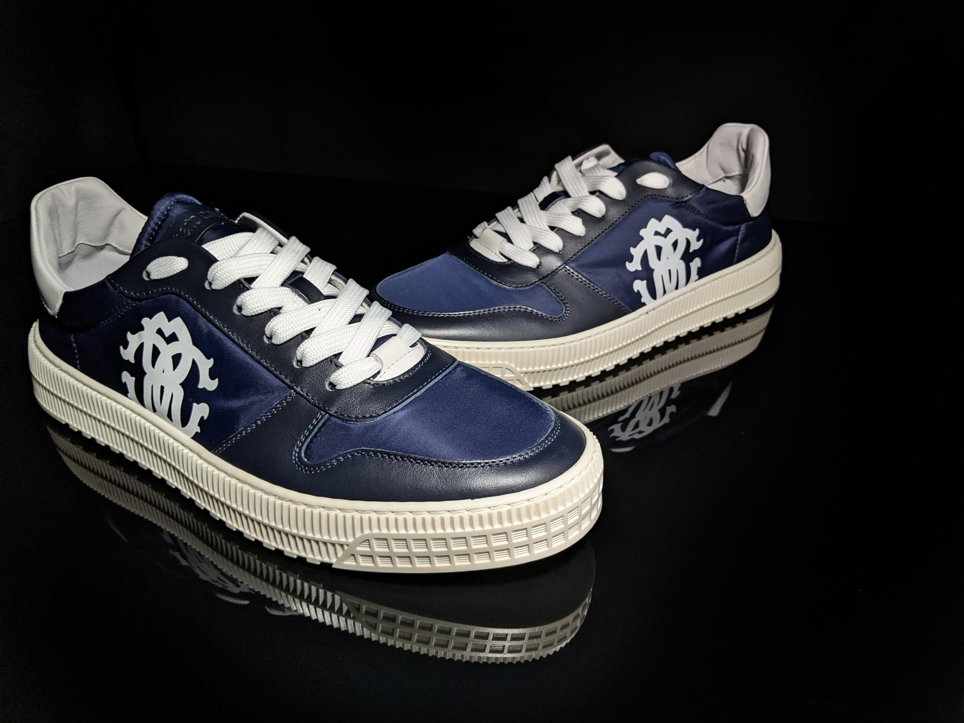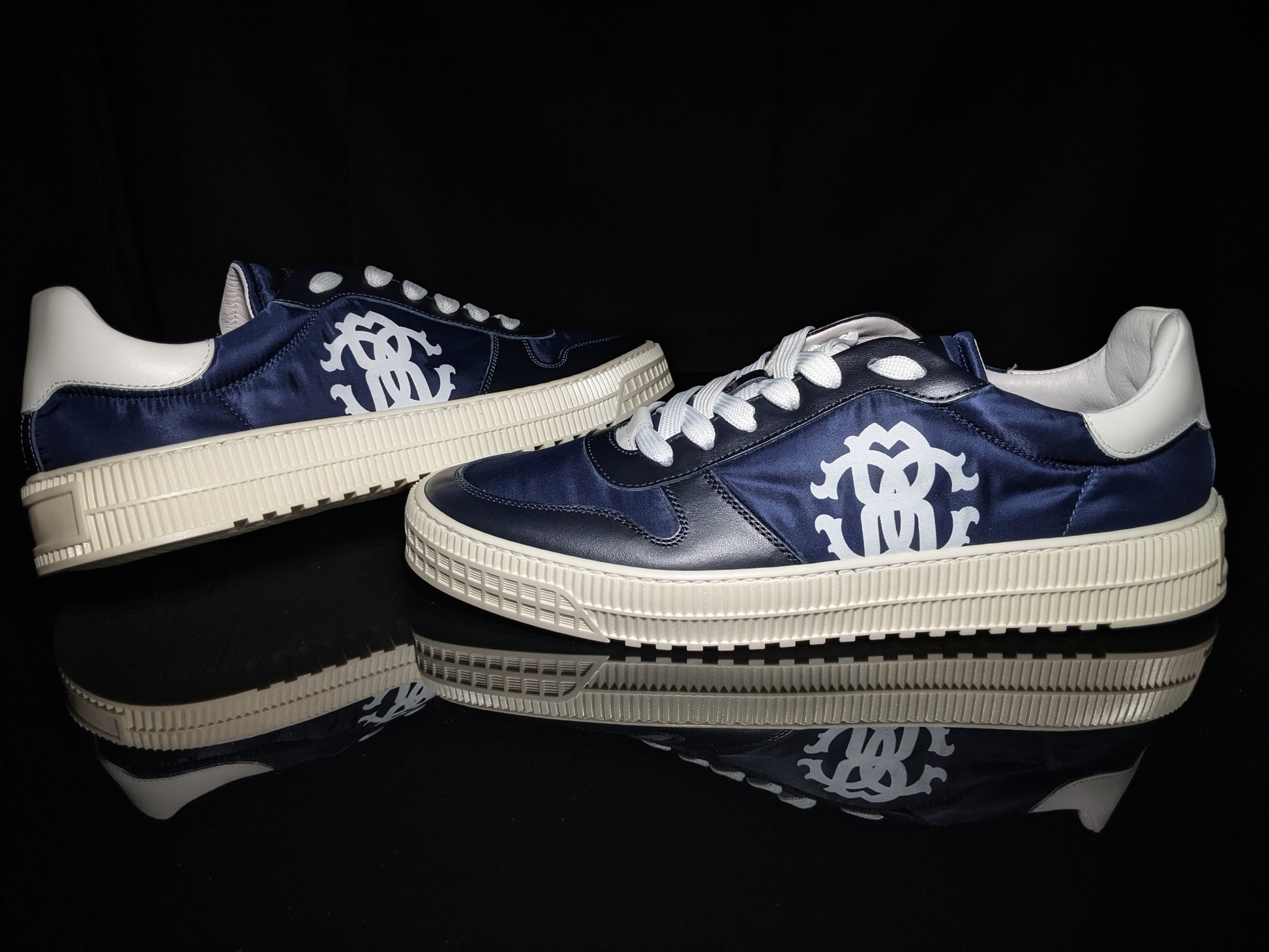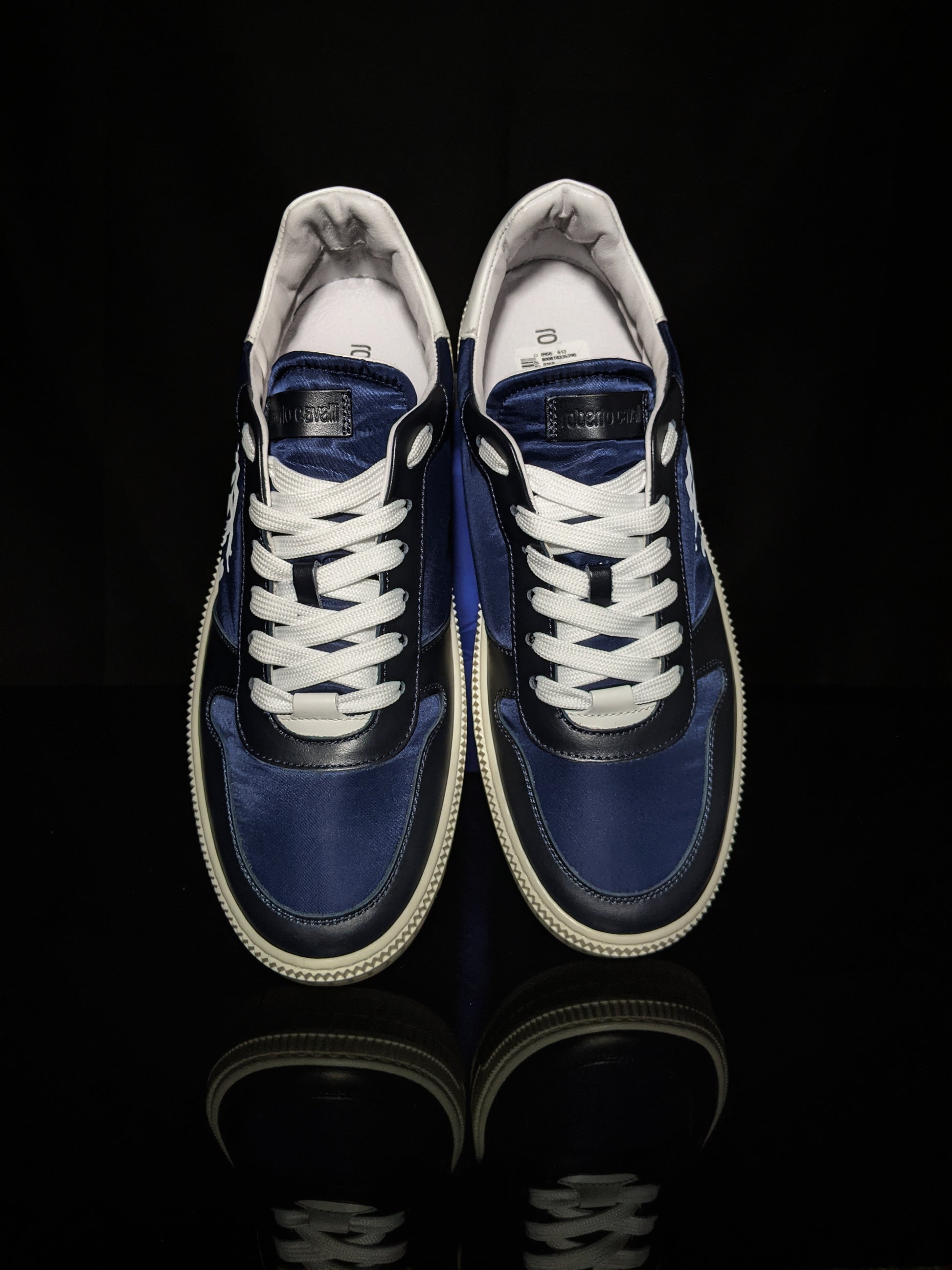 Roberto Cavalli Logo Navy Leather Sneakers