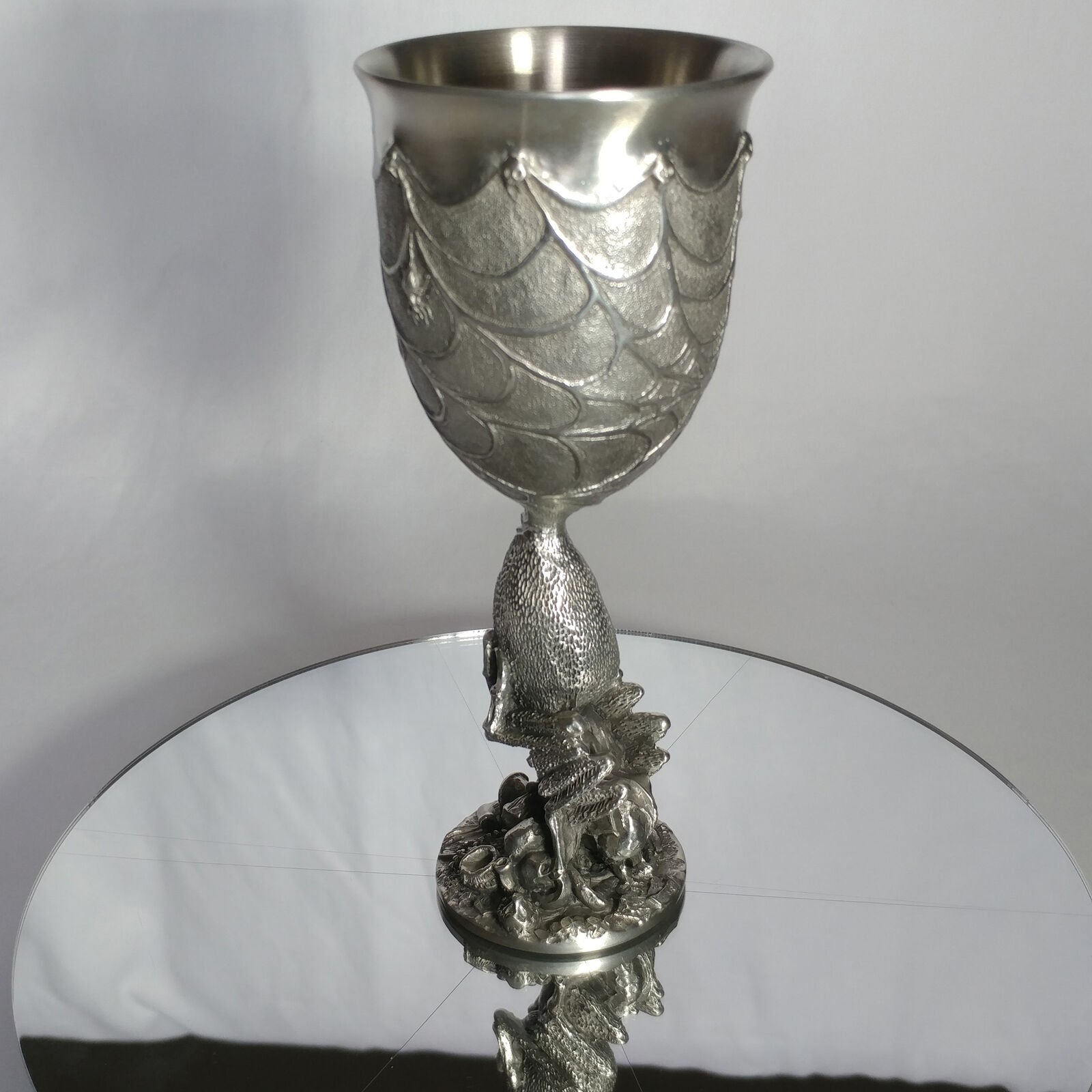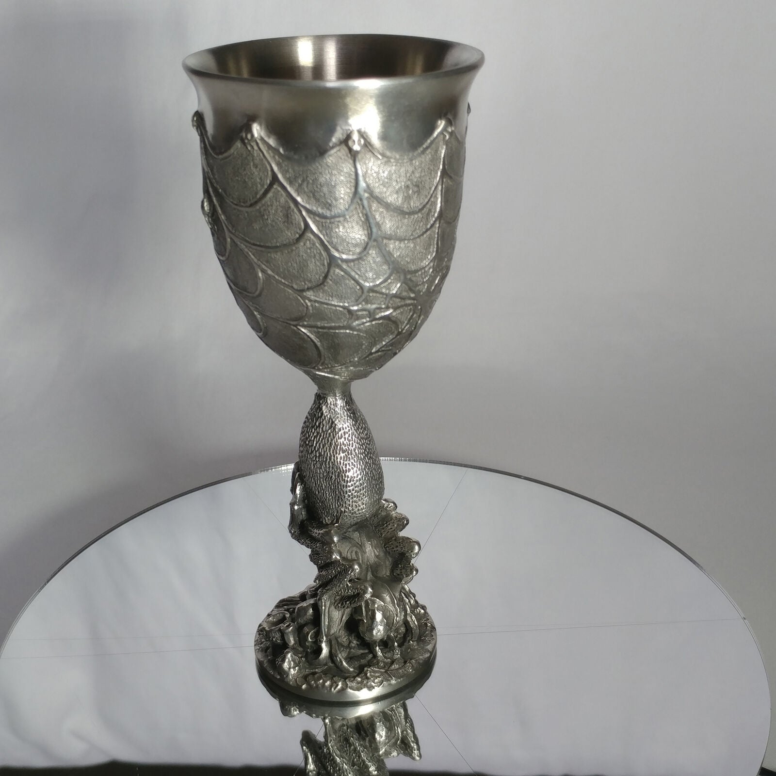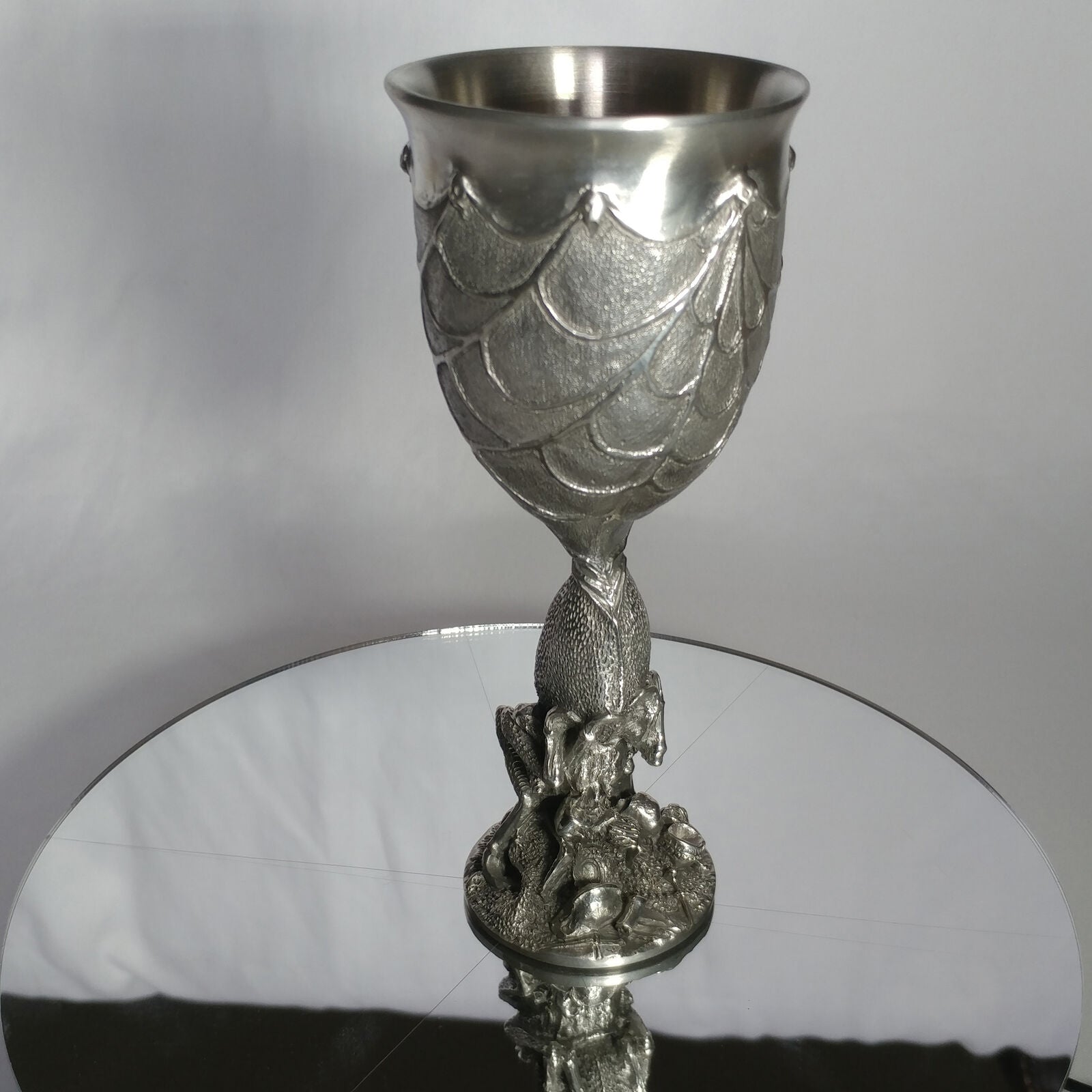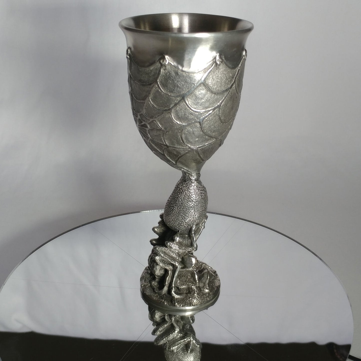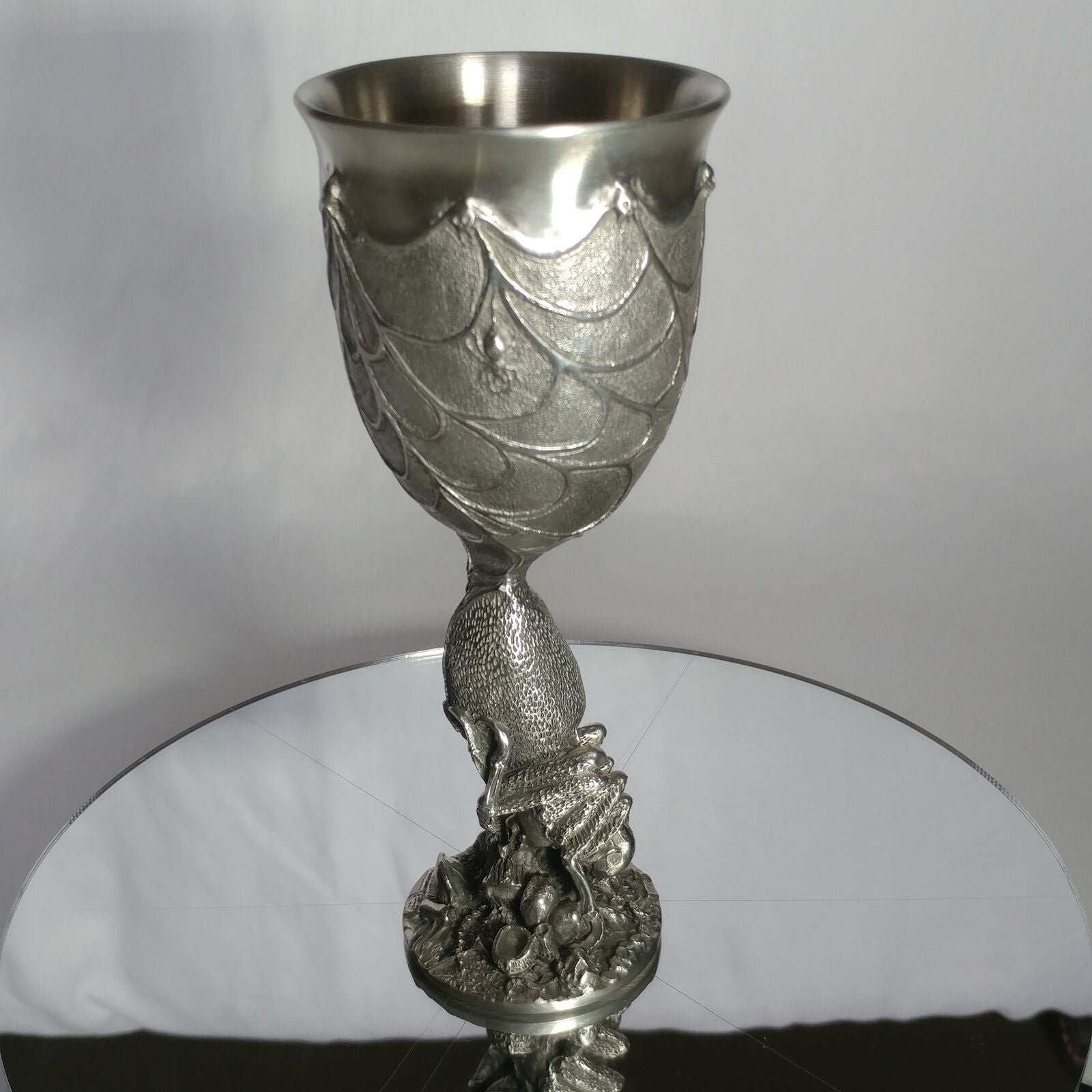Royal Selangor Pewter  Smaug Goblet without box. Made in Malaysia 7.5" H by 3" Top Outer Rim