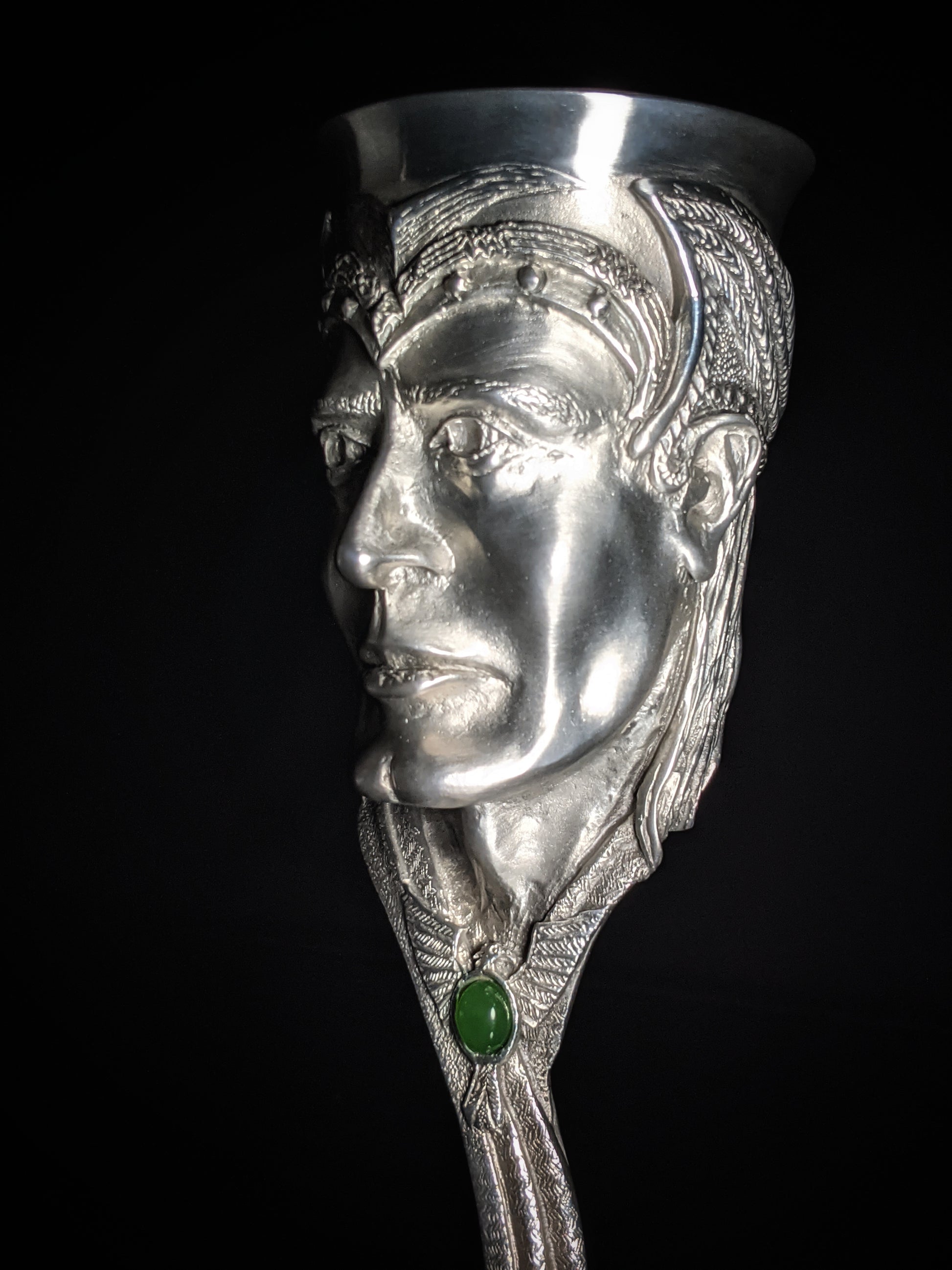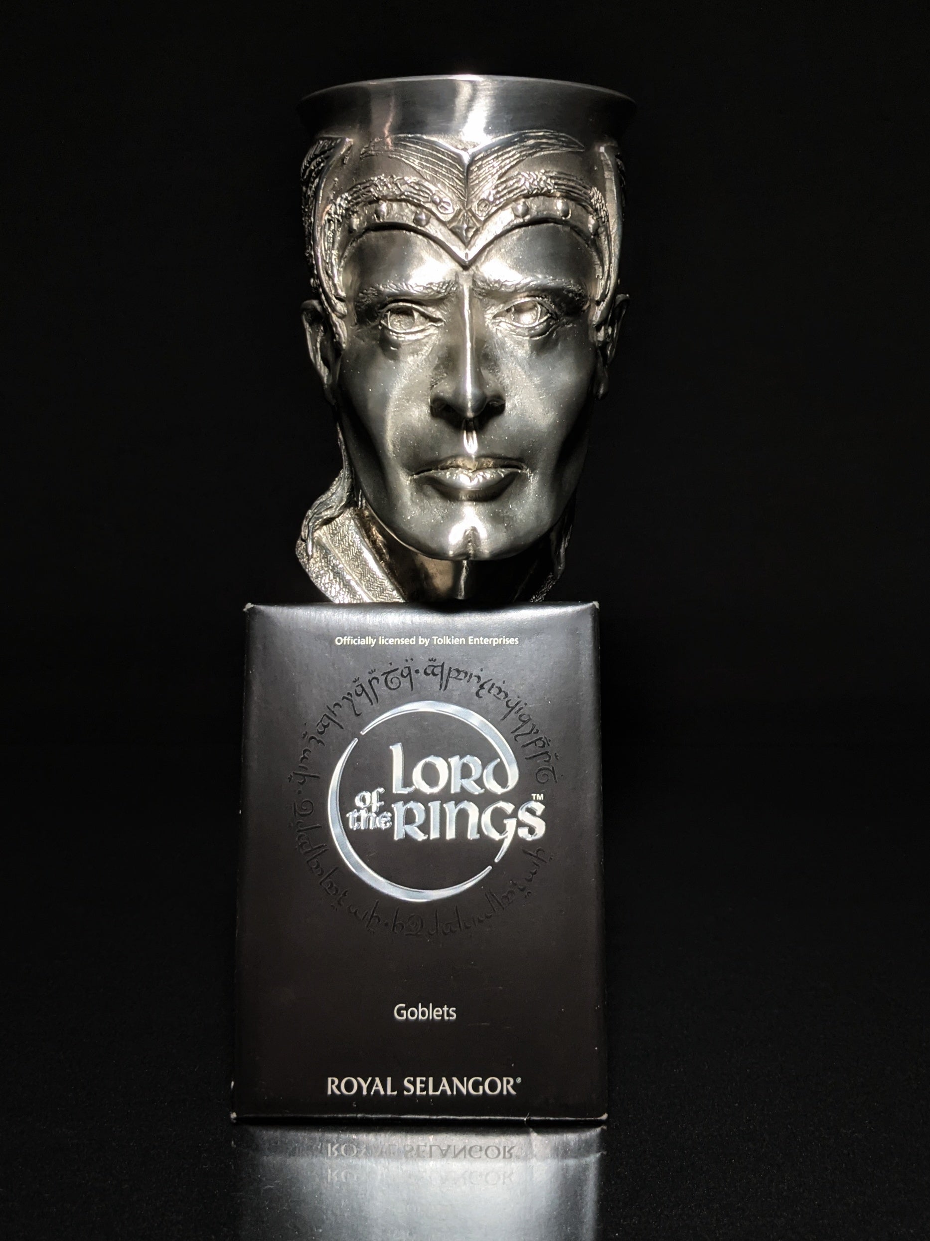 This is a Royal Selangor pewter Aragorn Lord of the Rings goblet. Made in Slovenia. Comes in the original box.