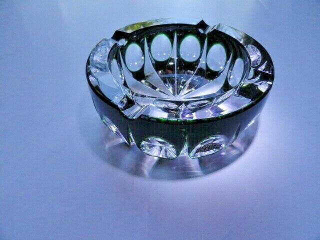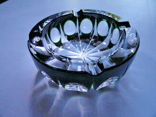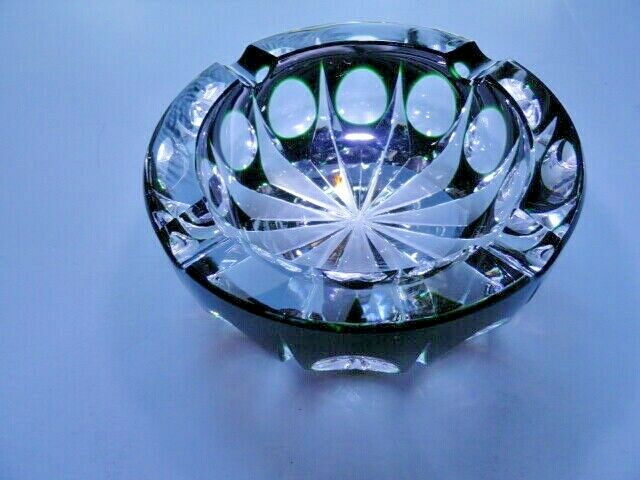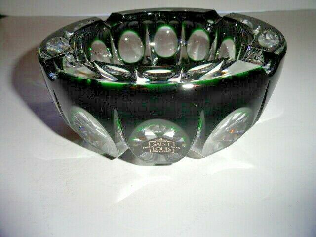 Saint-Louis Crystal Ashtray Emerald Green 6" diameter