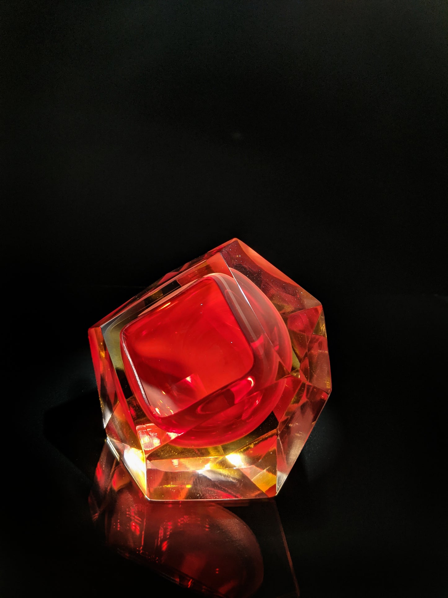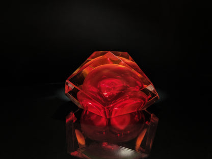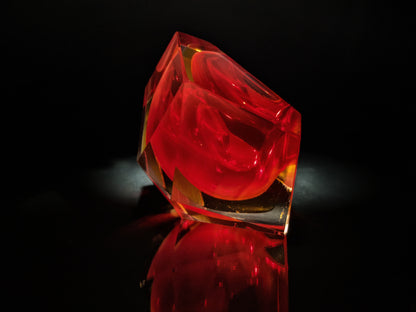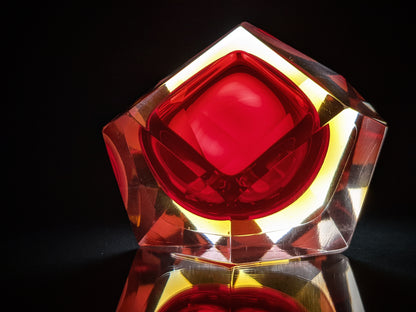 Sommerso Murano | Flavio Poli Yellow & Red Faceted Glass Ashtray | Italy 1950s