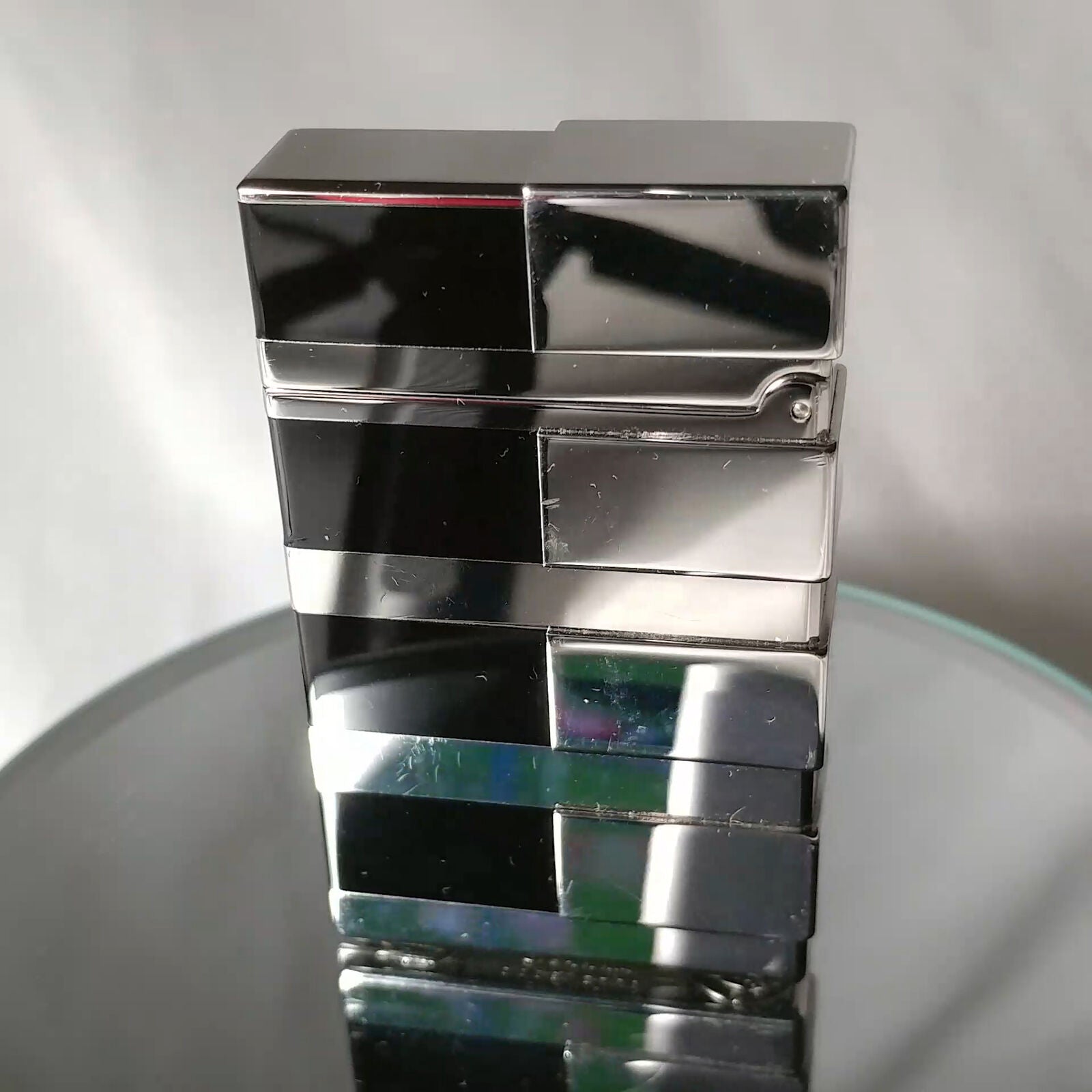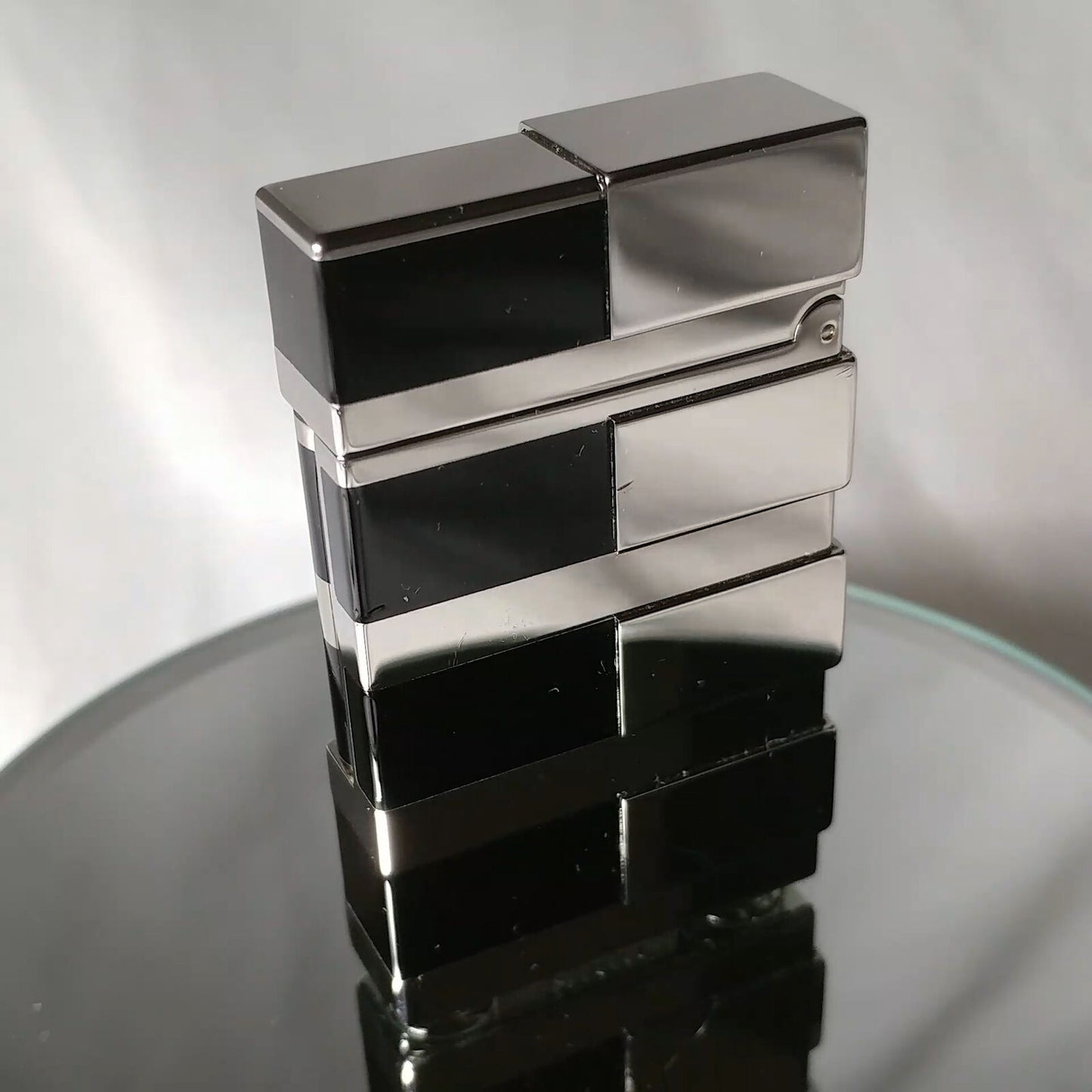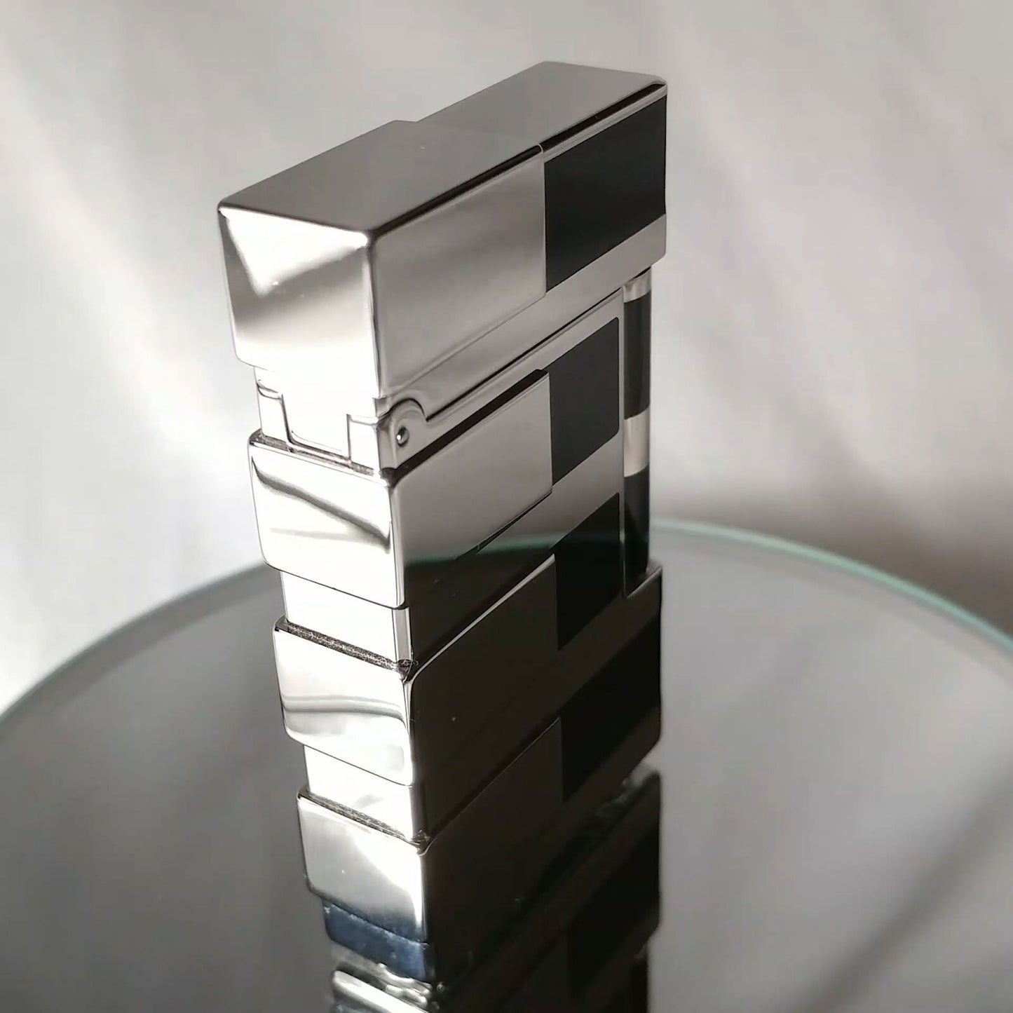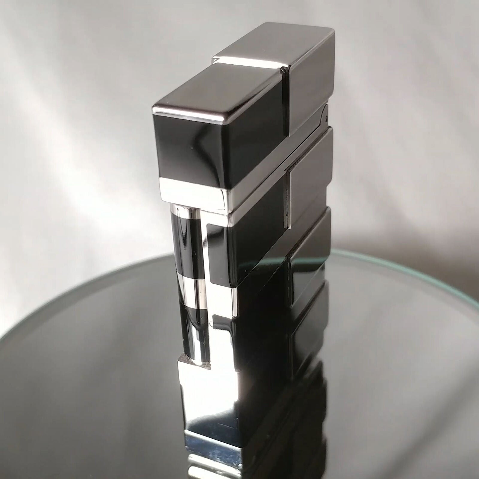 ST DUPONT CIGAR LIGHTER LINE LIGNE 2 PALLADIUM & BLACK CHINESE LACQUER