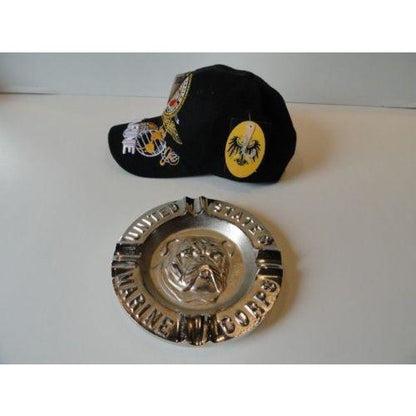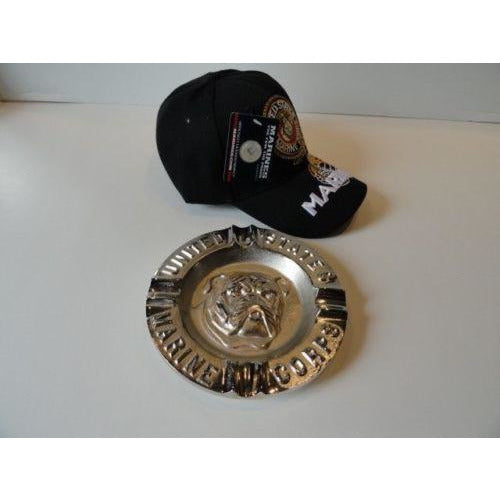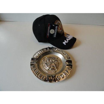 USMC Bulldog Ashtray & USMC Black Baseball Cap Combo