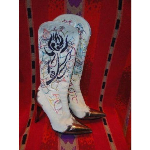 This is a preowned pair of Ladies boots made in Italy . Designed by Valerio Giuntoli. These are the El Vaquero style in the original box with tags. Size 39 with M witdth. Original sold for $1260. Good condition. We ship Worldwide fully insured. Signature is required upon delivery. Thank you!