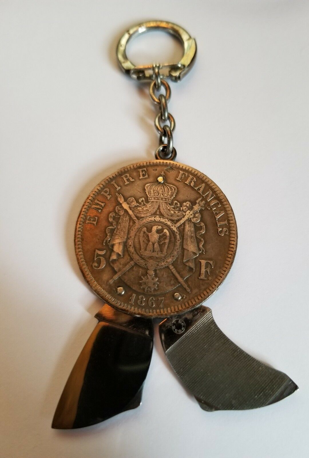 VINTAGE ELOI 5 FRANCS 1867 SILVER COIN POCKET KNIFE
