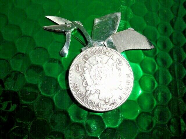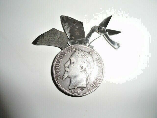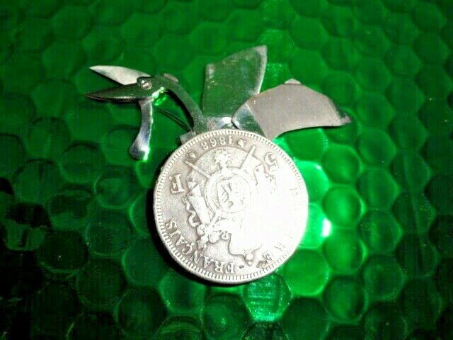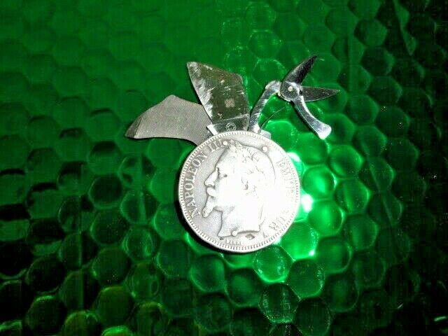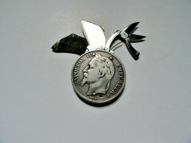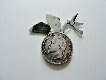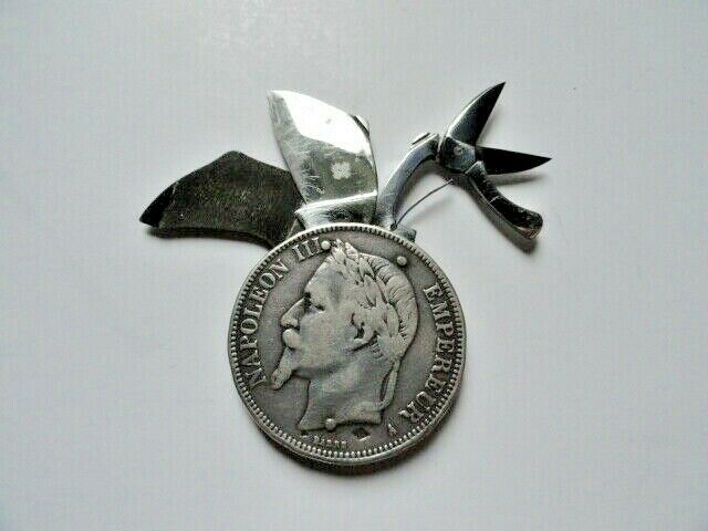 VINTAGE ELOI PERNET FRANCE 1868 SILVER COIN POCKET CIGAR CUTTER KNIFE